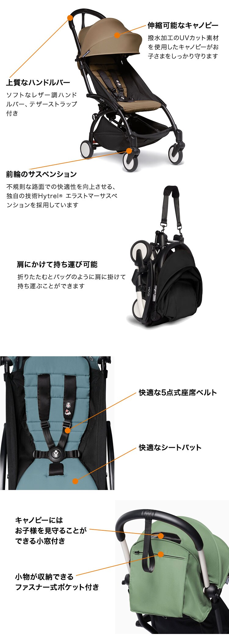 | いつも”on the go”な(飛び回っている)現代の親は、子どものニーズを第一に考えながらも、自分たちの人生に制限を設けるつもりはありません。 彼らはベビーカーを押しながら、日当たりの良いカフェテラスを通り抜けたり、にぎわったレストランで友人とのひとときを楽しんだりしています。 多忙でアクティブなご両親は、新生児期も、旅行にも、ひとつのベビーカーしか必要としないということです。 新生児期には大きくてかさばるベビーカーを購入、成長したら軽量で旅行でも使えるものに買い替える、ということはもうしなくてもいいのです。 |