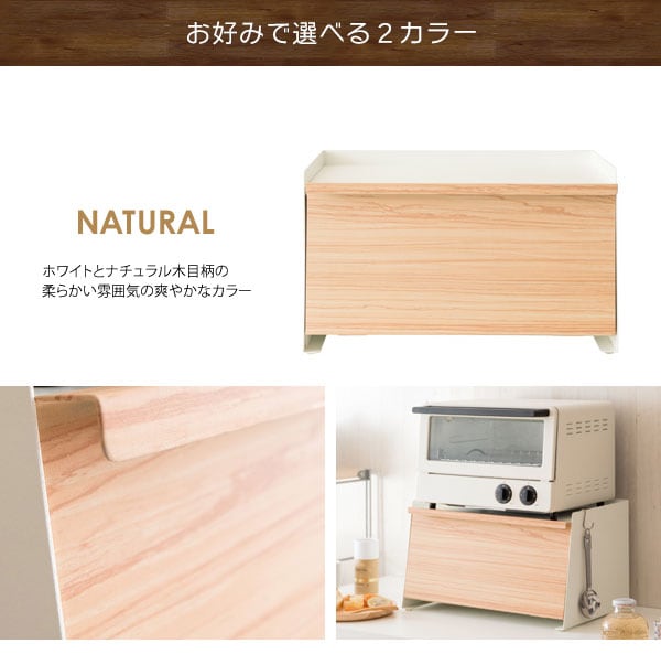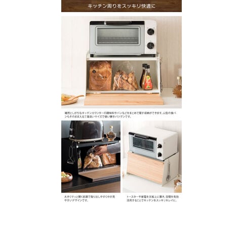 キッチンで雑多に置きがちなパンや調味料などをまとめて収納できます。前扉で中身を隠せて、必要な時はサッと開いて中が見やすく便利です。天板にはオーブントースターやコーヒーメーカーも置けるのでキッチン周りがスッキリ片付きます。