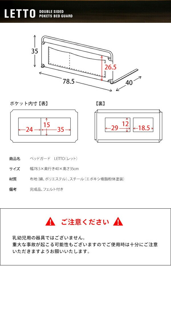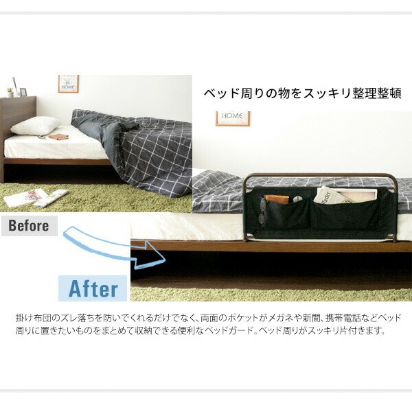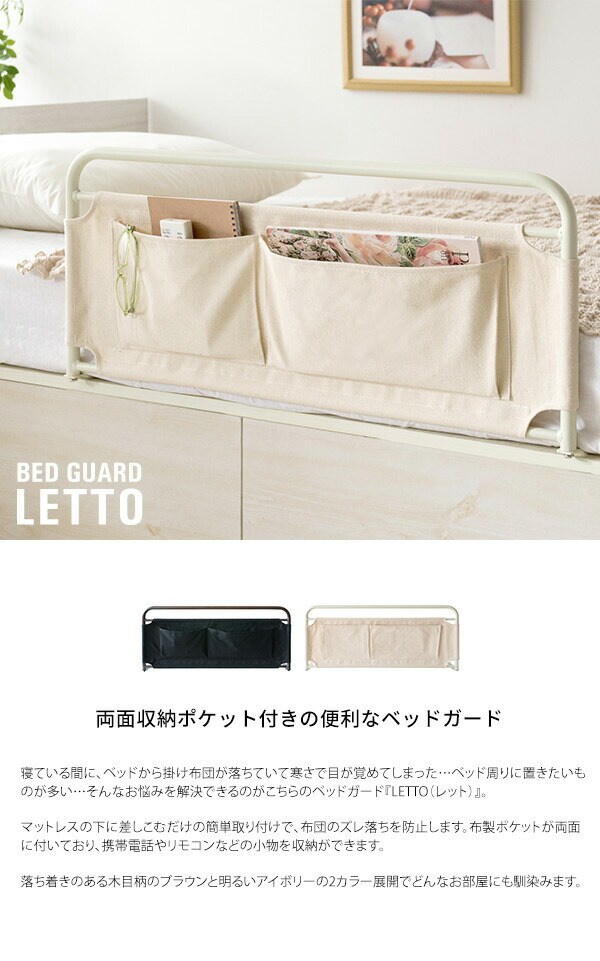 ポケット付き ベッドガード LETTO(レット) 小物収納付き 布団のずり落ち防止 ベッドガード 転落防止 ベッド柵 サイドガード【送料無料】