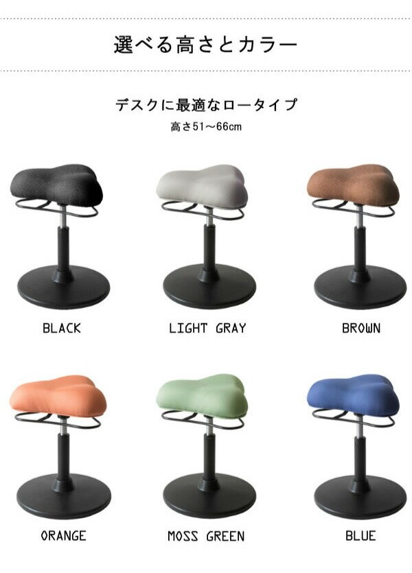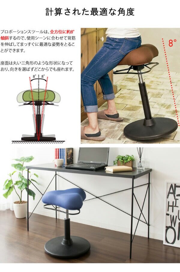プロポーションスツールに座ることで適度な運動を行い、仕事を効率よく進めましょう。