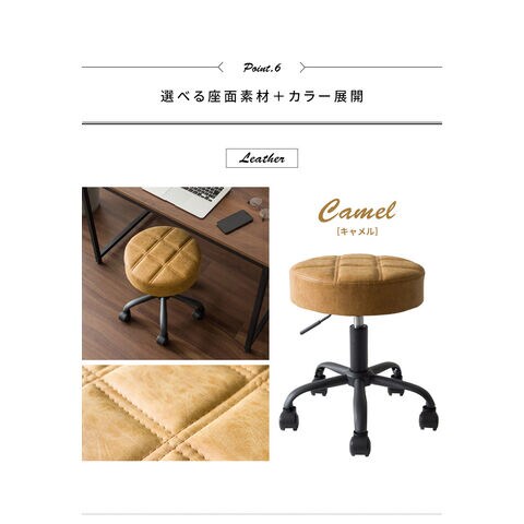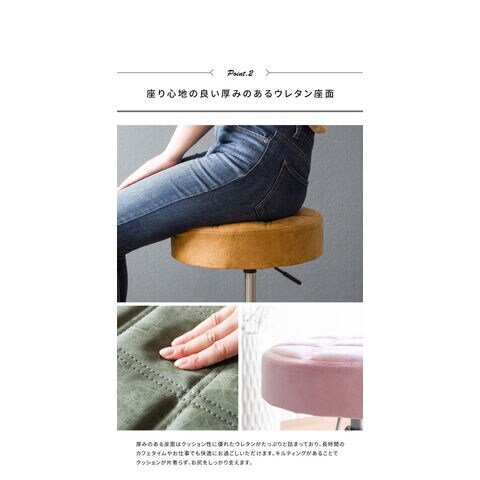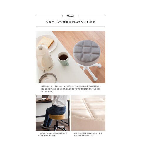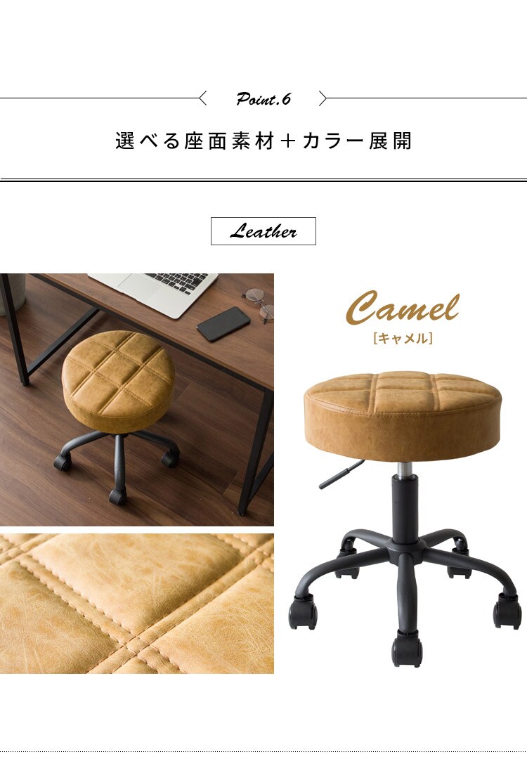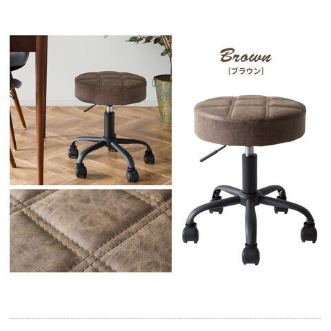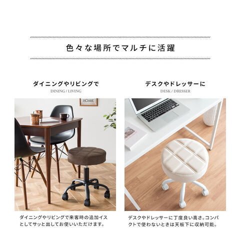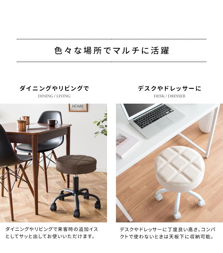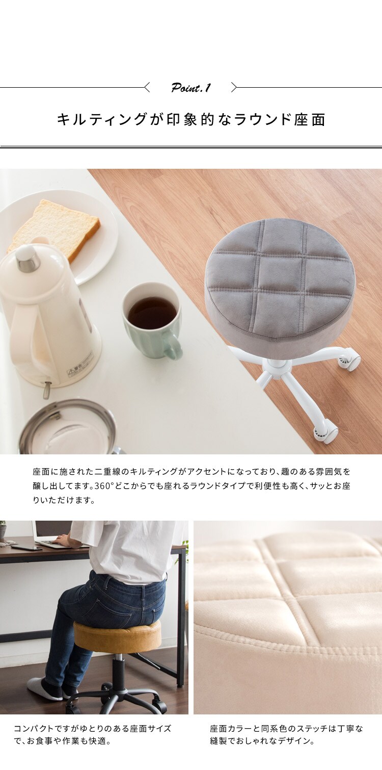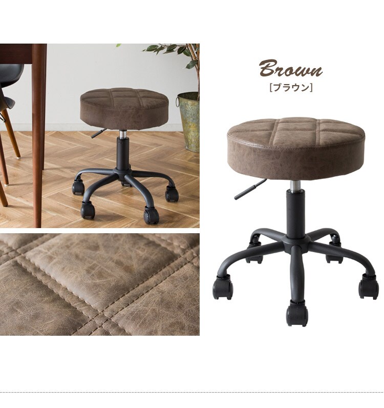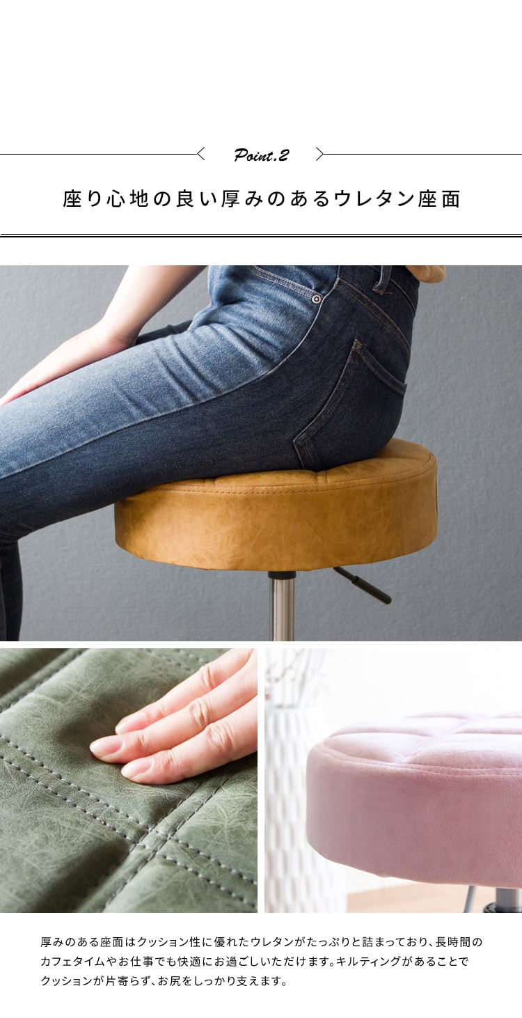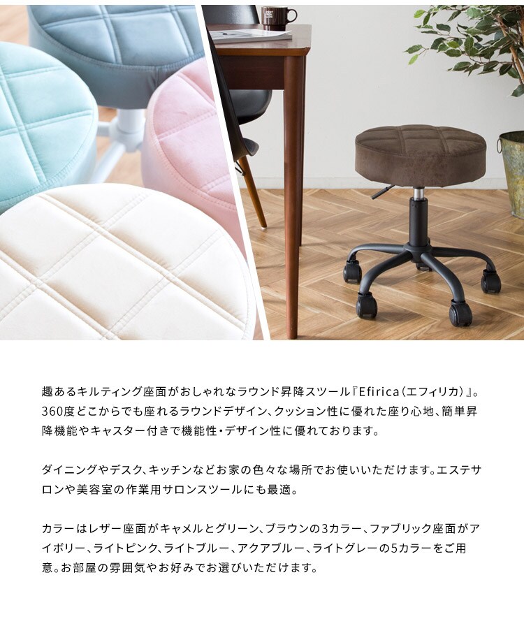 趣あるキルティングデザインのレザー座面がおしゃれなラウンド昇降スツール「Efirica(エフィリカ)」。