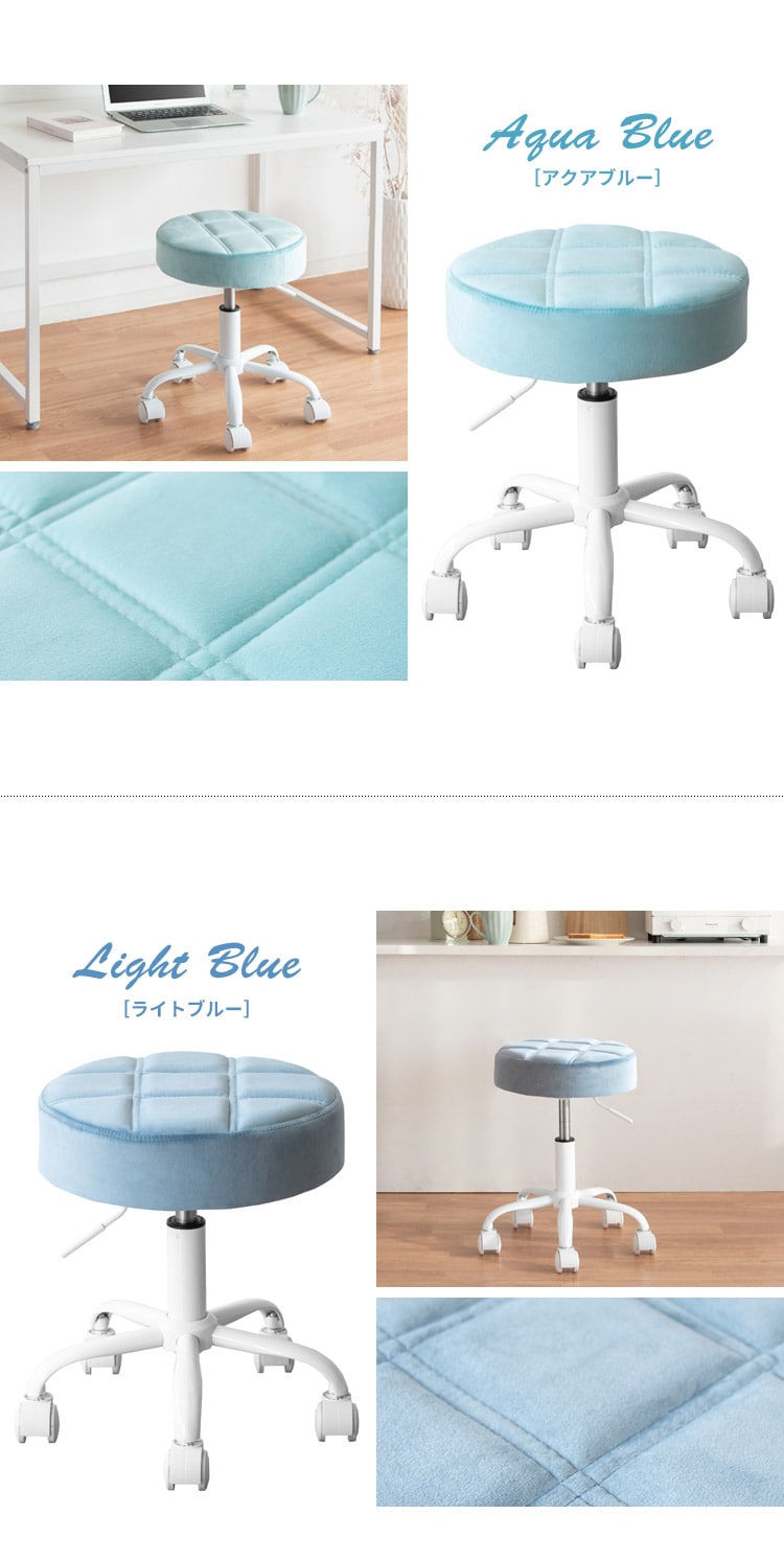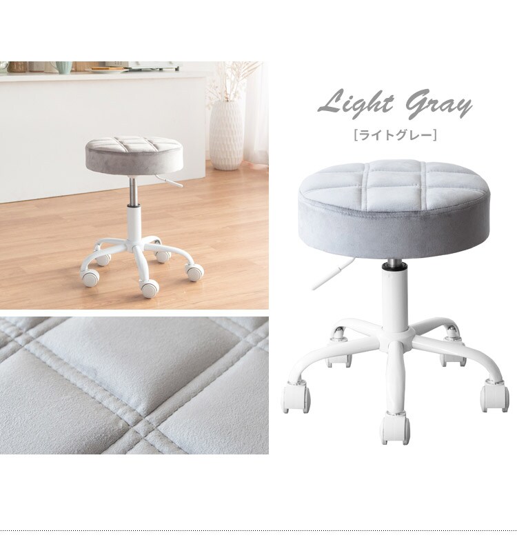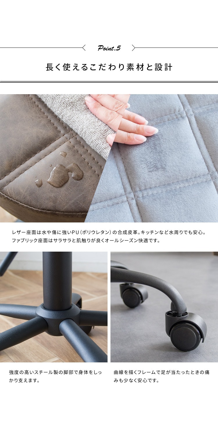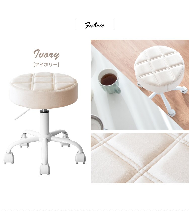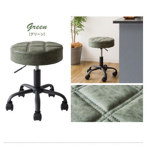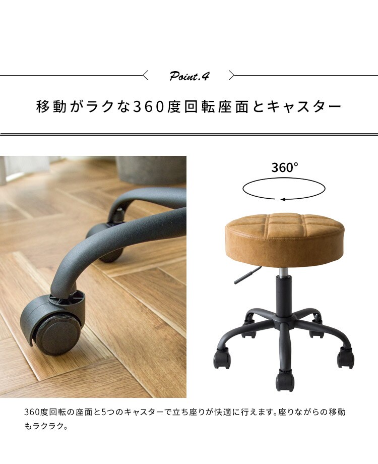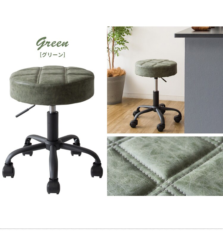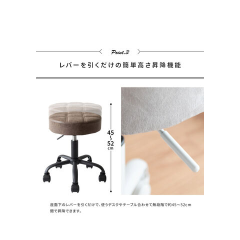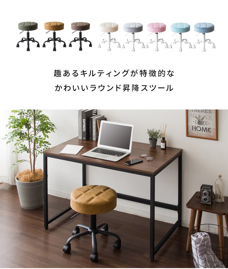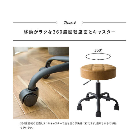趣あるキルティングデザインのレザー座面がおしゃれなラウンド昇降スツール「Efirica(エフィリカ)」。