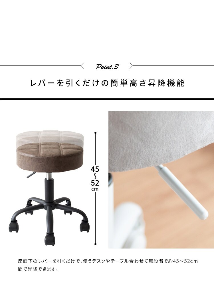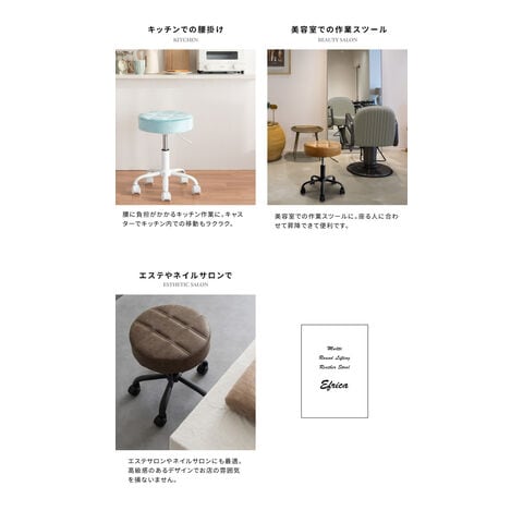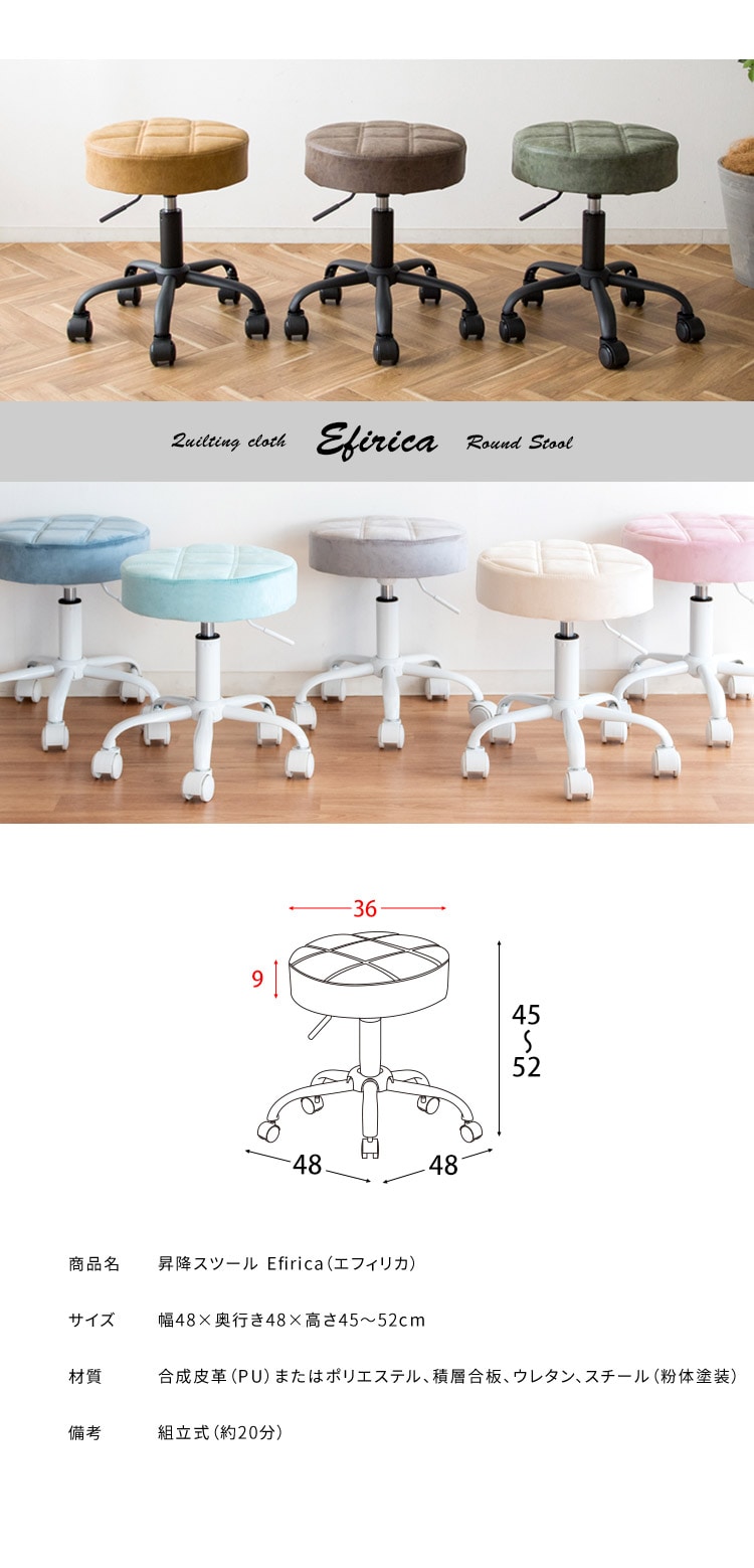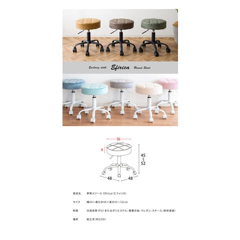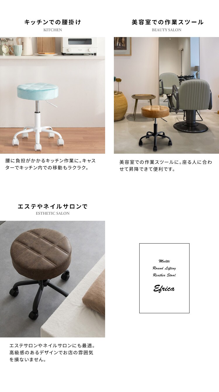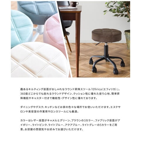 昇降スツール ラウンドタイプ Efirica エフィリカ レザータイプ キャスター付き ガス圧昇降式 丸椅子 スツール 丸椅子 サロンスツール【送料無料】