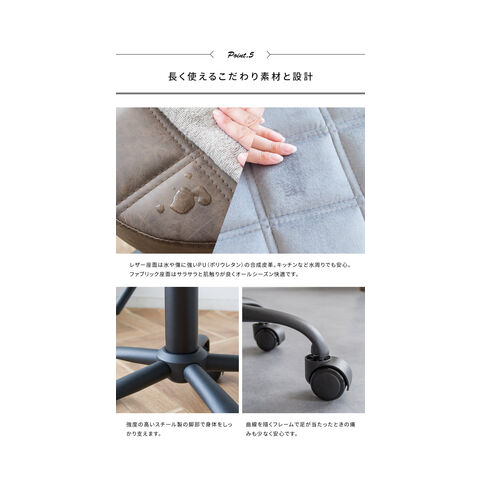 合成皮革(PU)、積層合板、ウレタン、スチール(粉体塗装)