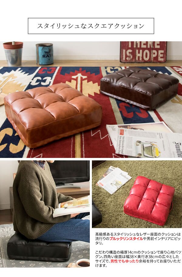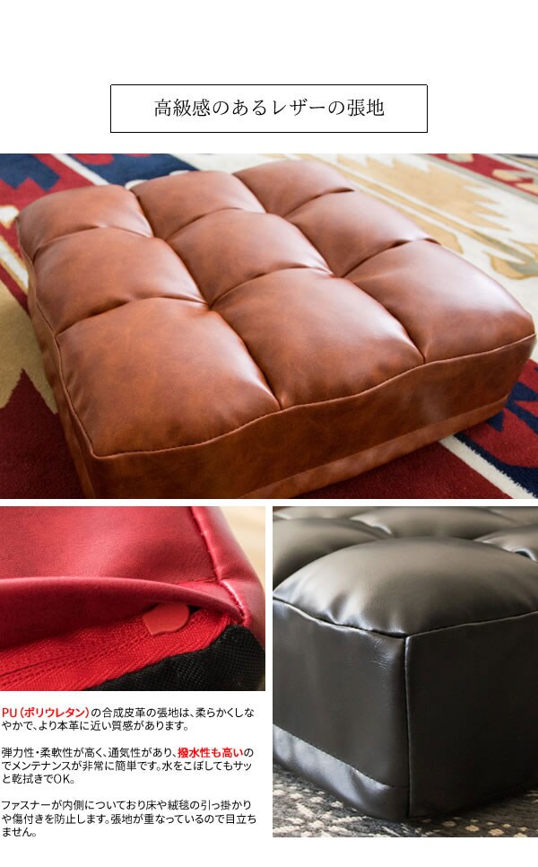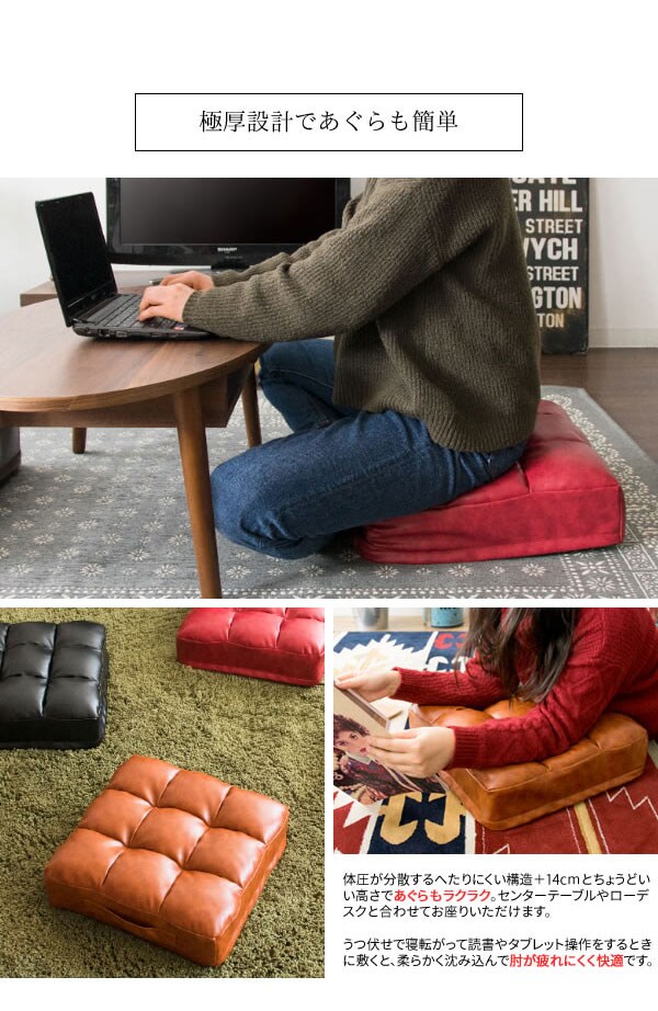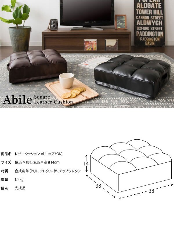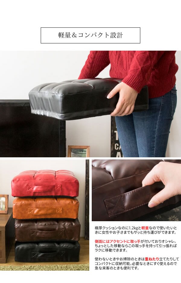 レザークッション Abile(アビル) 極厚 14cm 取っ手付き 合成皮革 レザー クッション 座布団【送料無料】