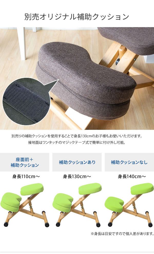 ・プロポーションチェアにこの補助クッションを取り付けることで、