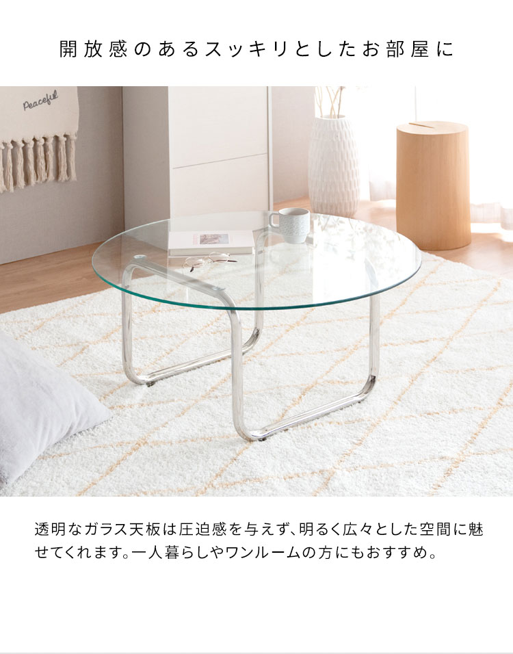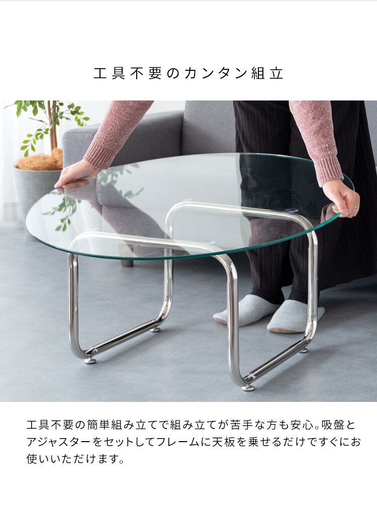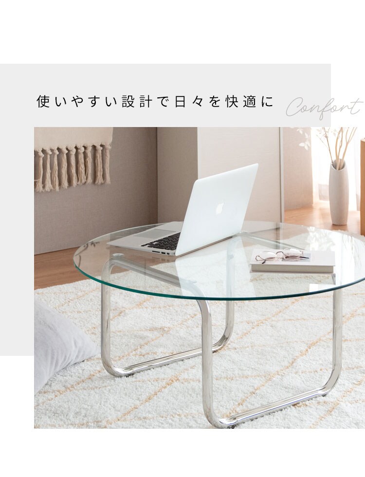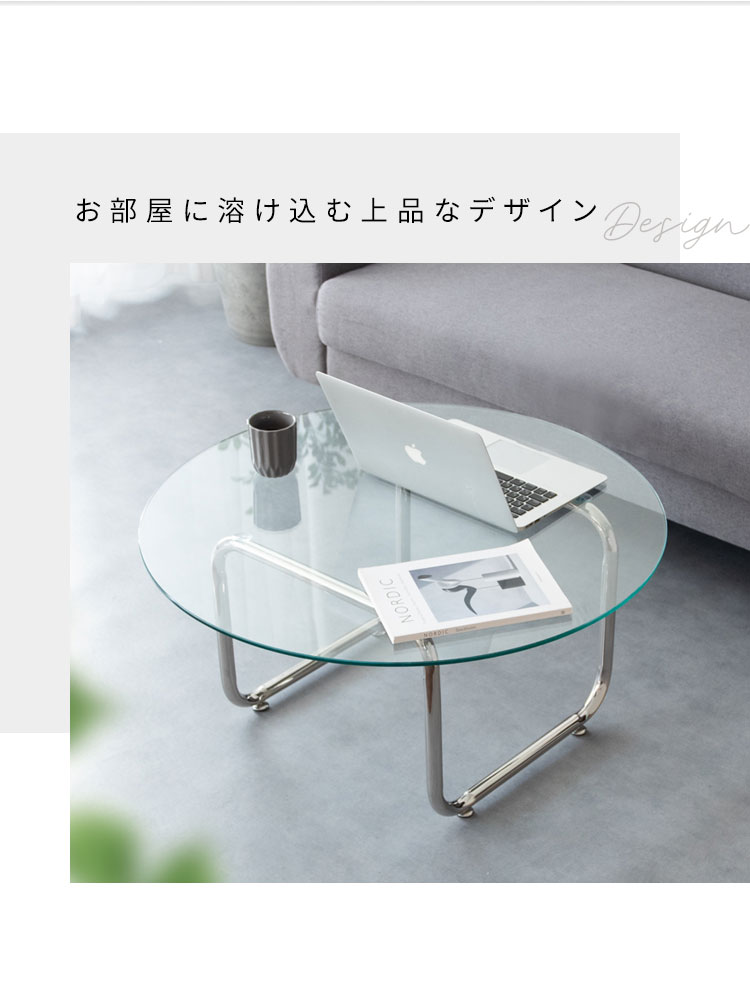 テーブル 机 ガラステーブル ラウンドテーブル ローテーブル 丸 強化ガラス ステンレス脚 アジャスター trares 作業 韓国 おしゃれ 幅80cm 奥行80cm 高さ38.5cm 透明 クリア シルバーフレーム【送料無料】