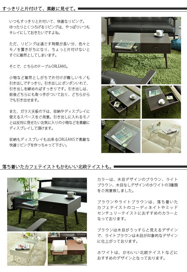 『引き出し付きテーブル ORLEANS 〔オリンズ〕』 センターテーブル 北欧 引出し付き 【送料無料】
