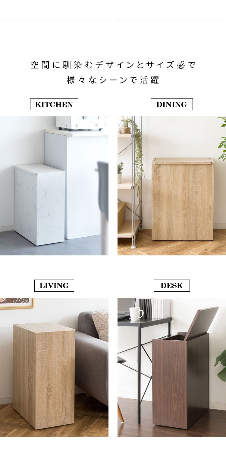 ゴミ箱だと分かりにくいスタイリッシュなデザインでキッチンに馴染みます。たっぷり入る45Lで、ニオイ漏れを防ぐフタや移動がラクにできる隠しキャスター付きで利便性も抜群。