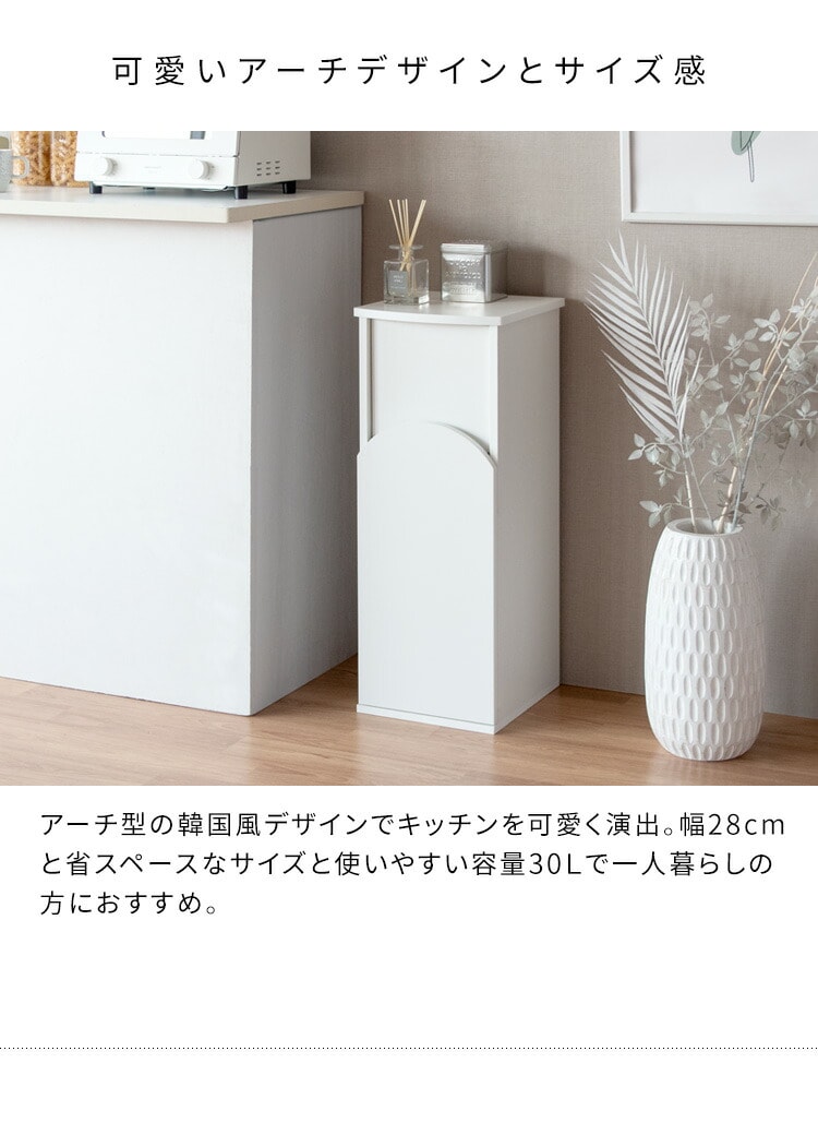 アーチダストボックス Arco アルコ ゴミ箱 ダストボックス 省スペース 幅28 奥行30 高さ75 シンプル かわいい ごみ 韓国風 くすみカラー プッシュ扉 キッチン ゴミ捨て ストッパー付き 取り替え簡単【送料無料】