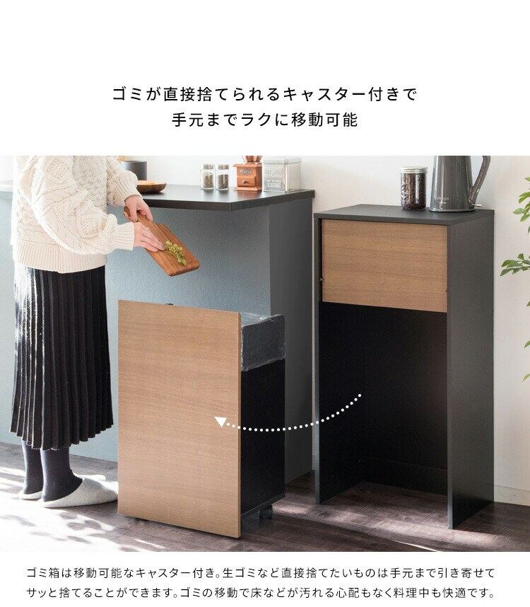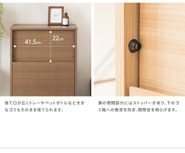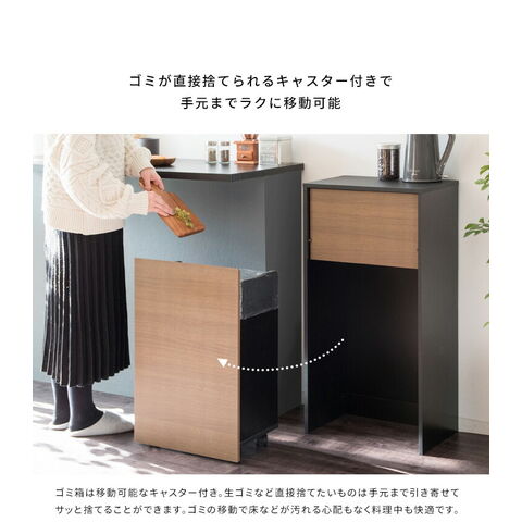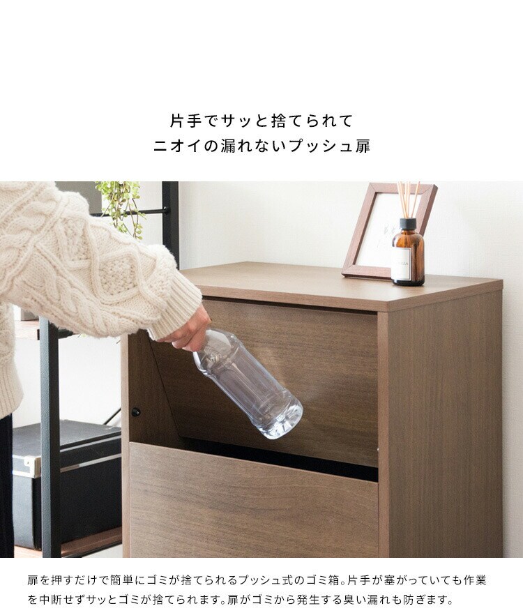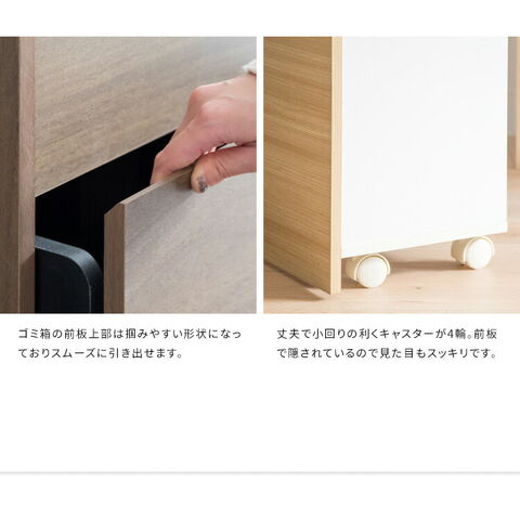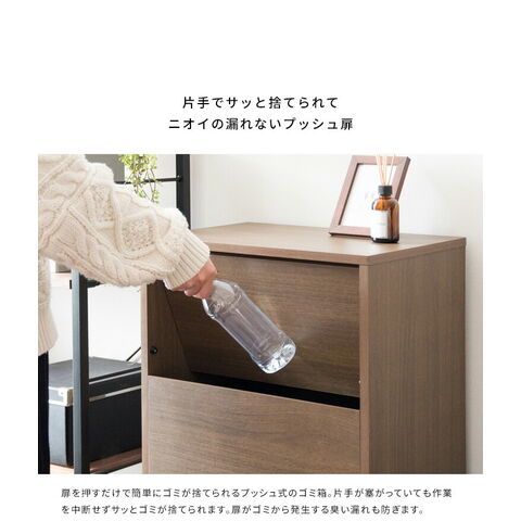ニオイが漏れにくく押すだけで簡単に捨てられるプッシュ扉式。ゴミ箱は手元までサッと移動できるキャスター付きで、ゴミ捨ての際も取り出してすぐ回収できます。ゴミ袋の着脱も簡単で利便性バツグンです。