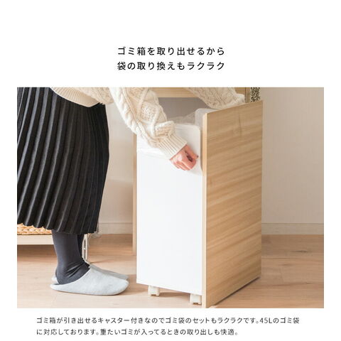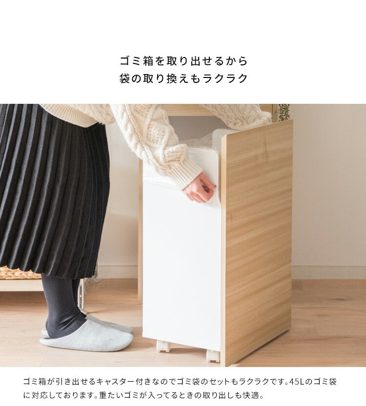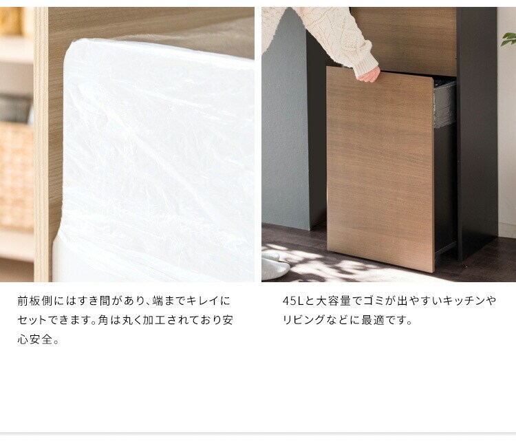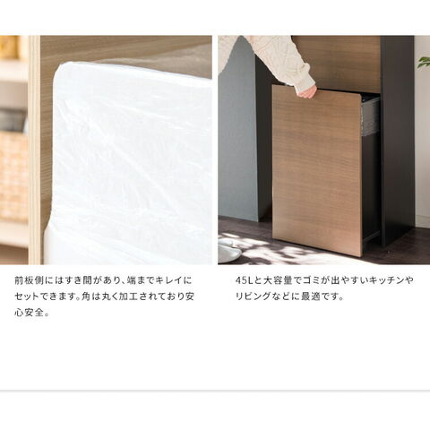たっぷり入る容量45Lで大家族のご家庭でも快適。ブラウン×ブラックとブラウン、ナチュラルの3カラーをご用意。お好みやお部屋の雰囲気でお選びいただけます。
