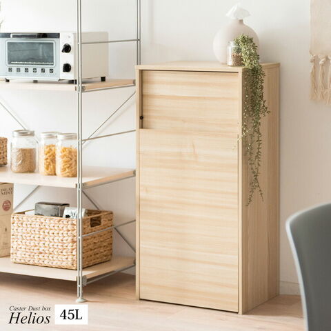 キャスター付き ダストボックス Helios(ヘリオス) 木目調 45L プッシュ式 キッチンペール ごみ箱 ふた付き 縦型 ごみばこ【送料無料】