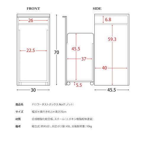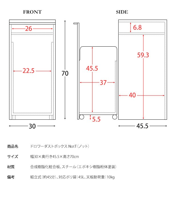 備 考 組立式(約45分)、対応ポリ袋:45L、天板耐荷重:10kg