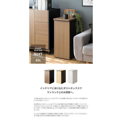 たっぷり入る容量45Lで大家族のご家庭でも快適。ブラウンとホワイト、ナチュラルの3カラーをご用意。お好みやお部屋の雰囲気でお選びいただけます。