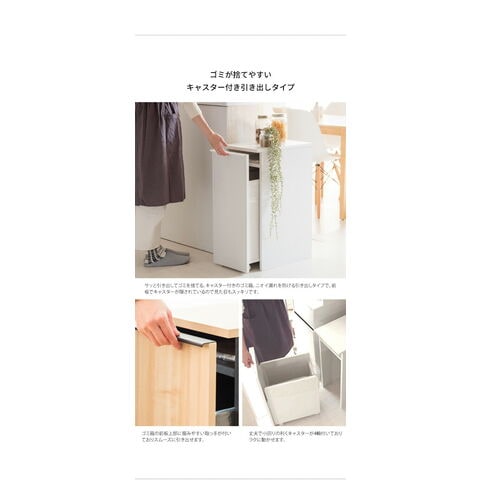 生活感のないスタイリッシュなデザインと使い勝手の良さが特徴のゴミ箱で、インテリアにこだわりたい方にピッタリです。ゴミ箱はニオイ漏れを防ぎ手元までサッと移動できるキャスター付きで、ゴミ捨ての際も取り出してすぐ回収できます。ゴミ袋の着脱も簡単で利便性バツグンです。