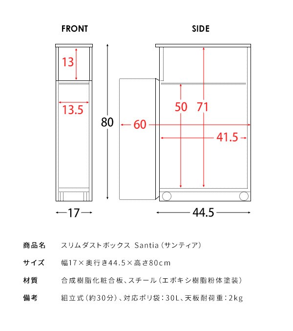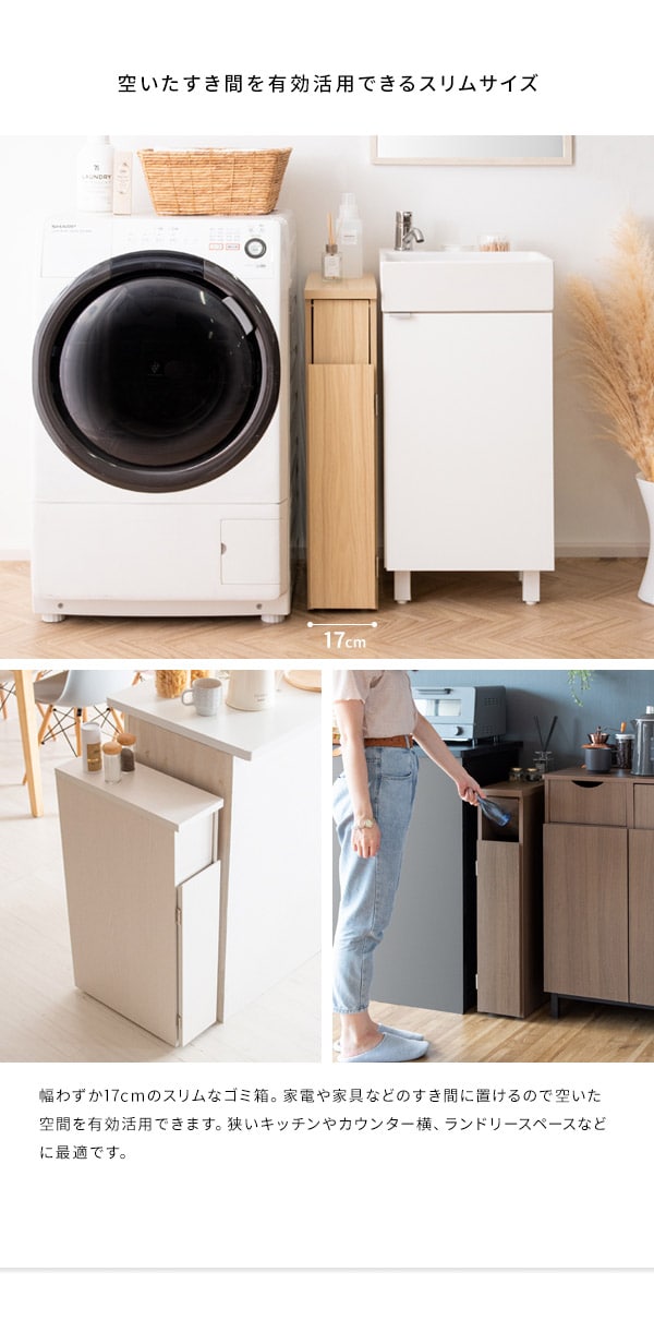 幅わずか17cmでキッチンや洗面所のすき間に置けるプッシュ式スリムダストボックス「Santia(サンティア)」。