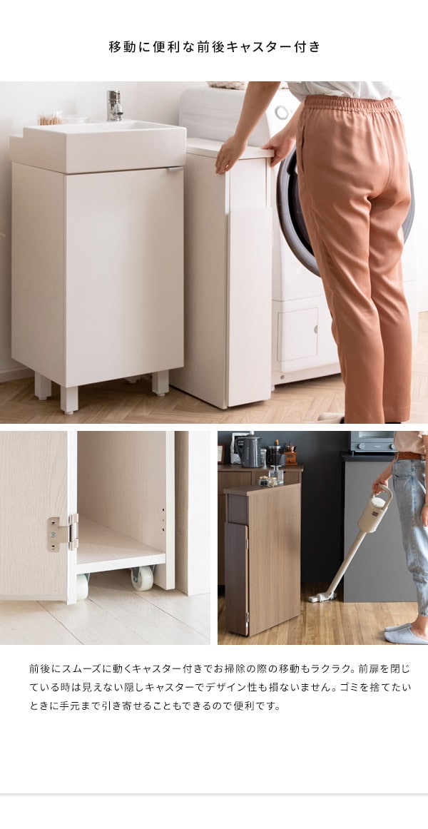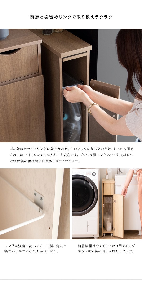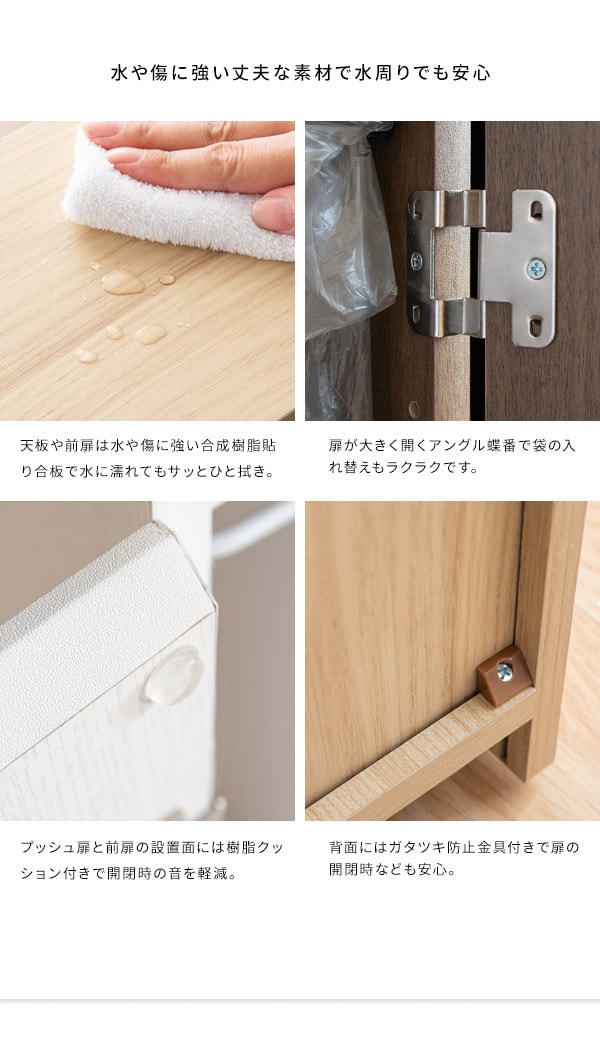 ニオイが漏れにくく押すだけで簡単に捨てられるプッシュ扉と移動もできるキャスター付きでゴミ捨てがラクラク。コンパクトでも容量30Lとゴミをたっぷり捨てられます。