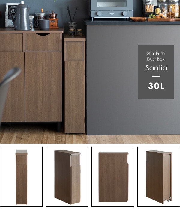 ゴミ箱 スリムダストボックス 幅17cm Santia サンティア プッシュ式 30リットル ワンプッシュ キッチンペール スリムデザイン ごみばこ 木目調【送料無料】