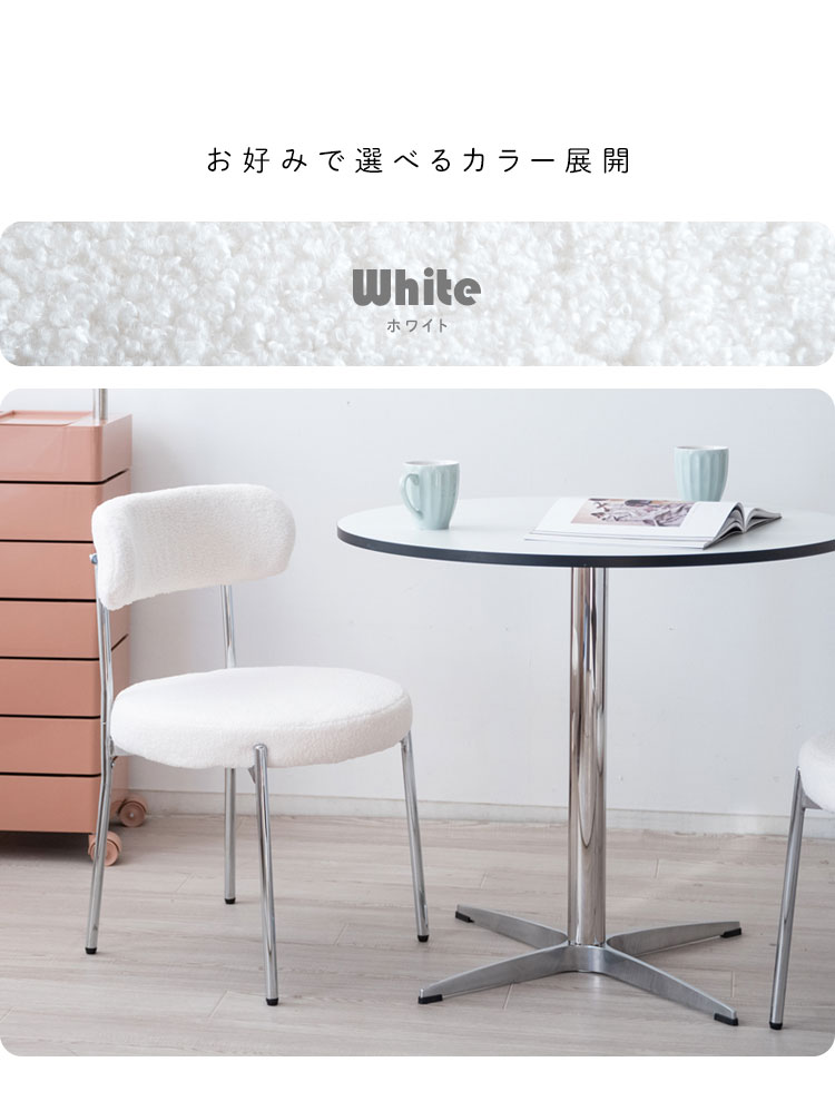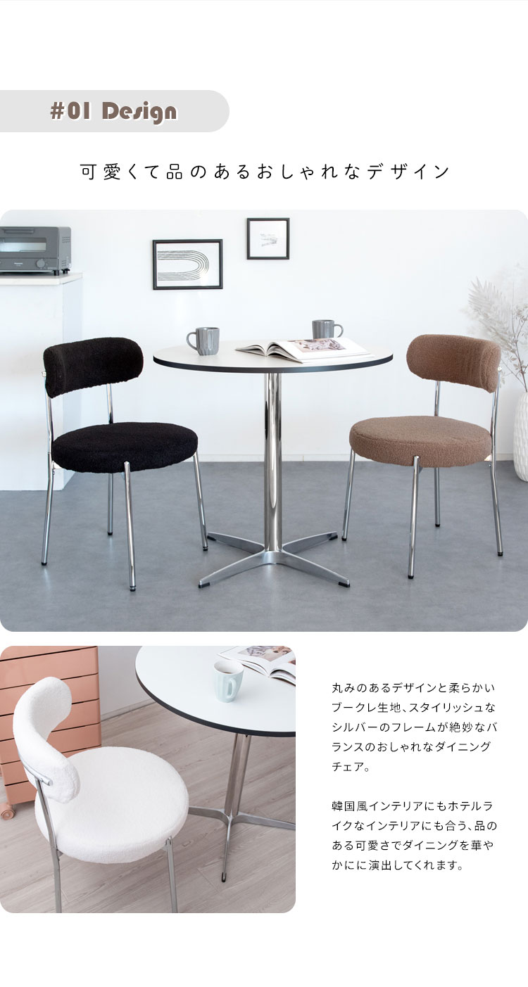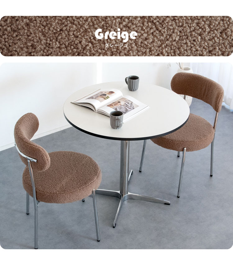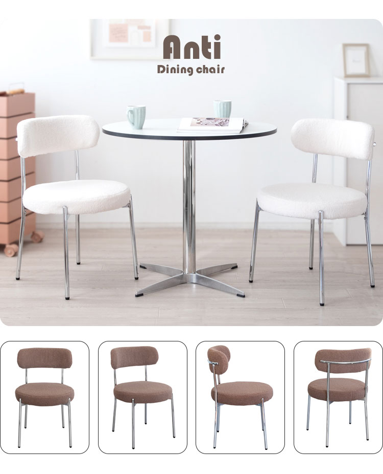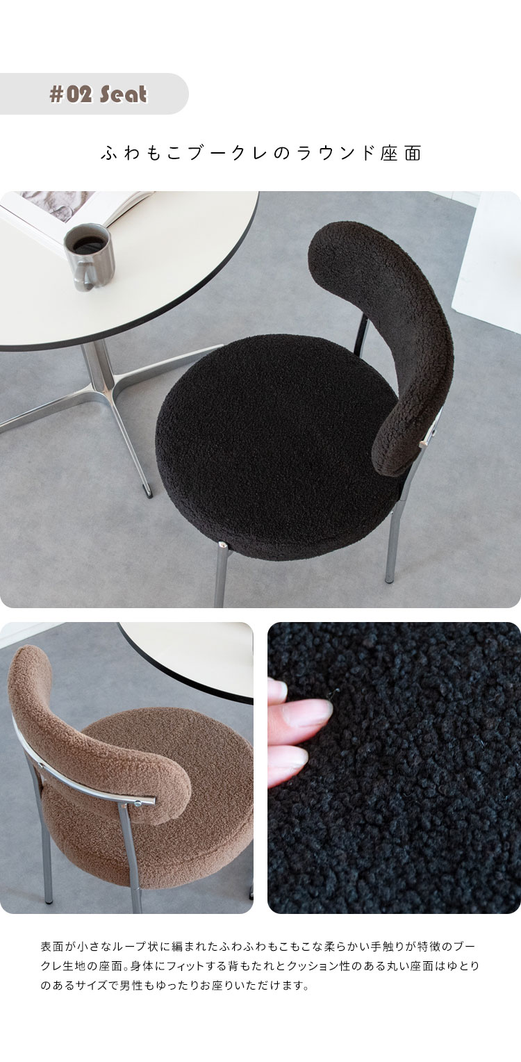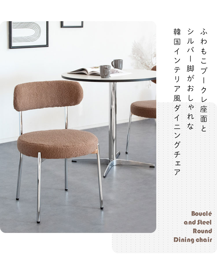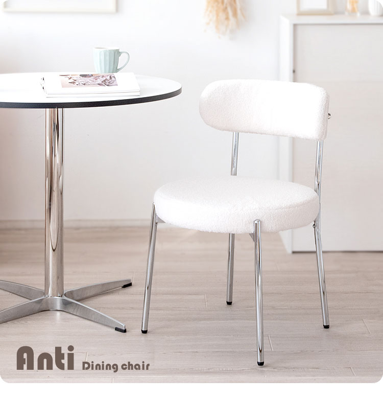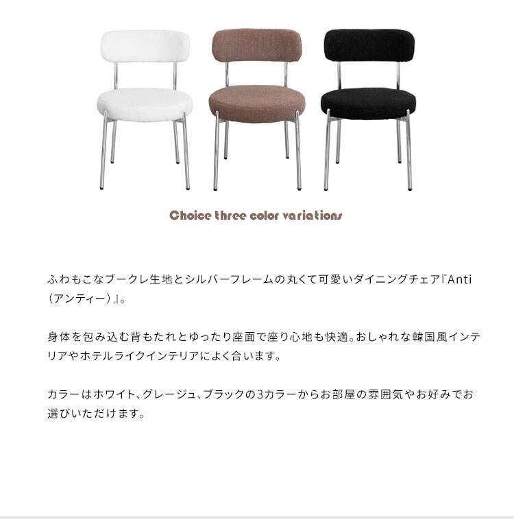 ふわもこなブークレ生地とシルバーフレームの丸くて可愛いダイニングチェア『Anti(アンティー)』。