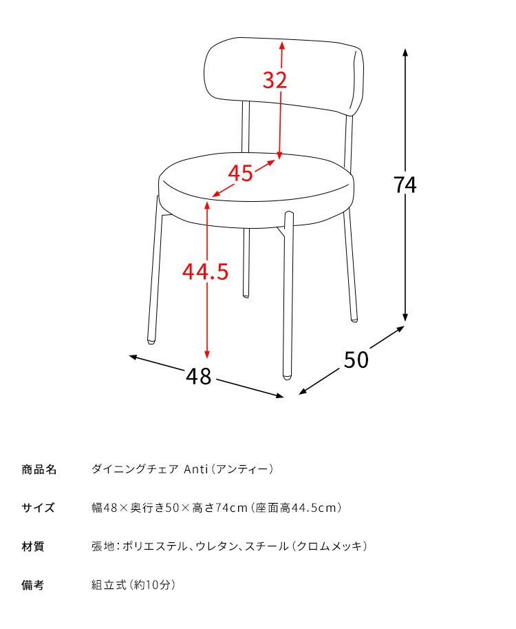 サイズ:幅48×奥行き50×高さ74cm(座面高44.5cm)