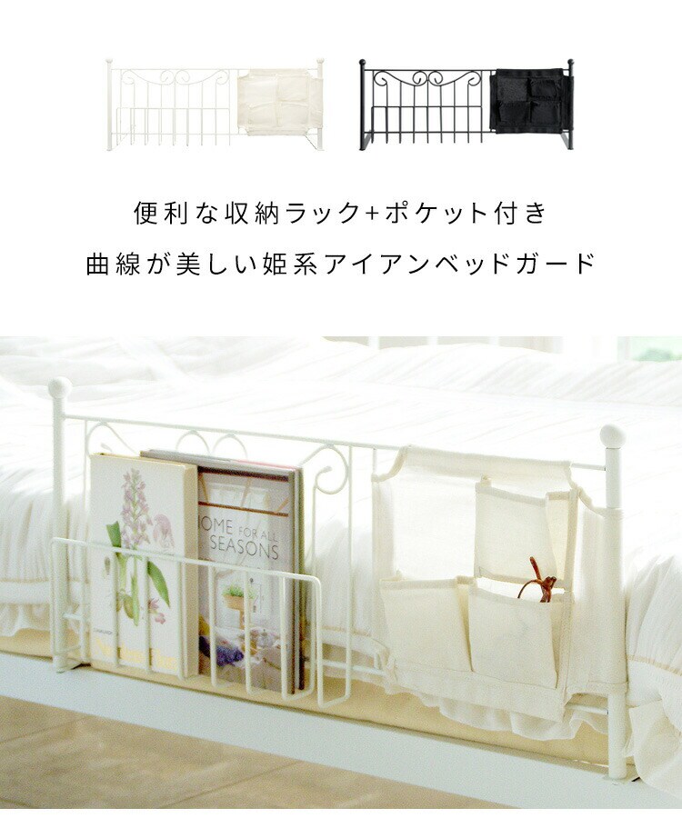 曲線や球体の美しいアイアンフレームが特徴の『DELSOL(デルソル)』シリーズのベッドガードは可愛いベッドにも合い、お部屋の雰囲気を壊しません。