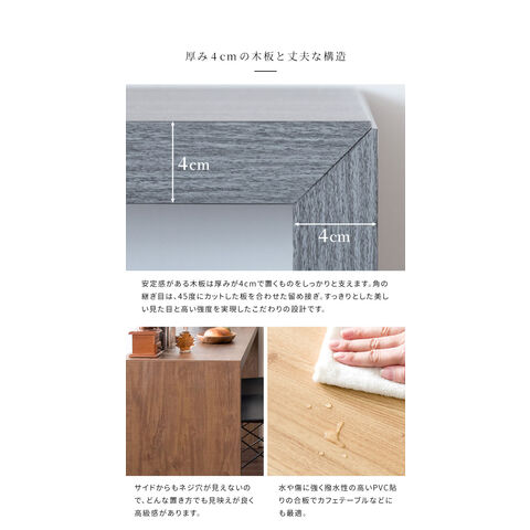 厚み4cmの頑丈な設計でパソコンやプリンターも置けるので、テレワークや在宅勤務の方にも安心してお使いいただけます。