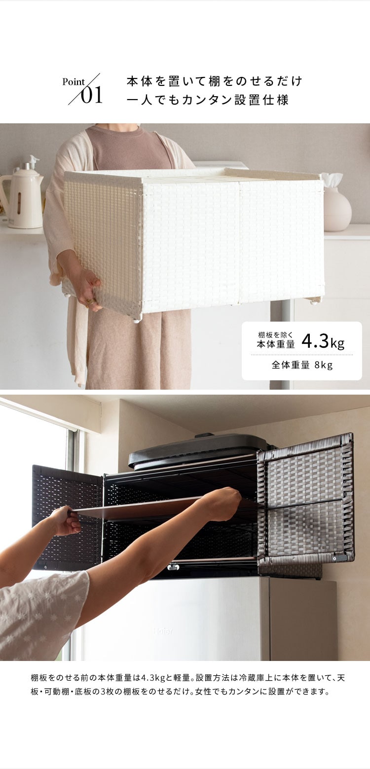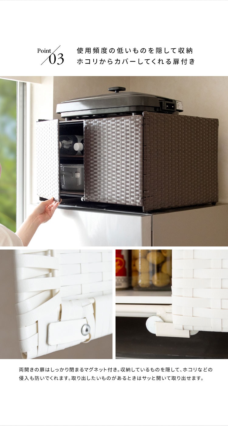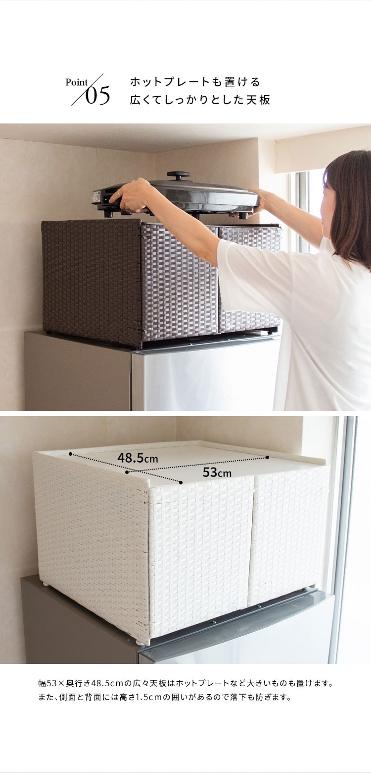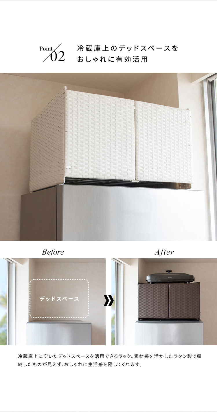 冷蔵庫上ラック Rifero 冷蔵庫上ラック レンジ上ラック キッチン収納 冷蔵庫上 レンジラック キッチンラック キッチンスペース 冷蔵庫上収納 スペース 冷蔵庫の上 北欧 人工ラタン 樹脂製ラタン【送料無料】