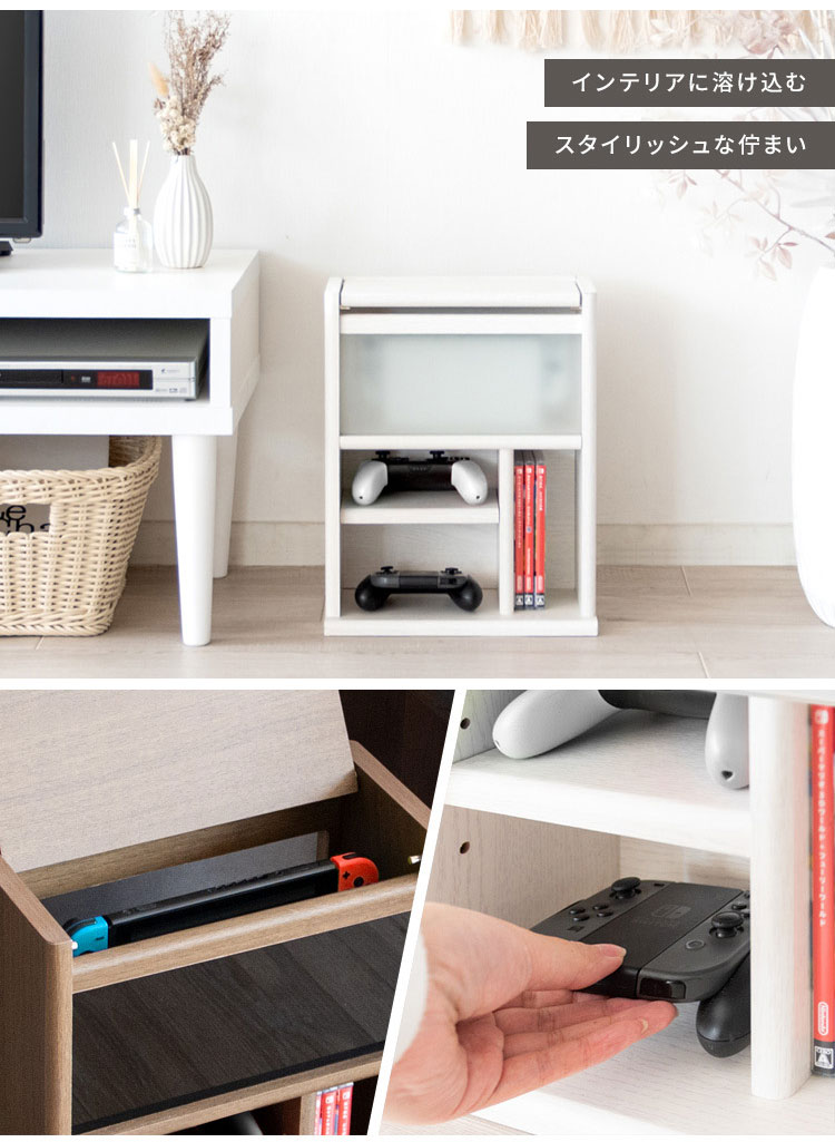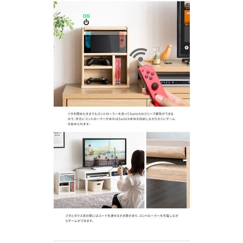 インテリアから浮いてしまうSwitchを充電スタンドごと入れられるので、ホコリや汚れを防ぎながらお部屋の雰囲気を損ねることなくおしゃれな空間を演出します。