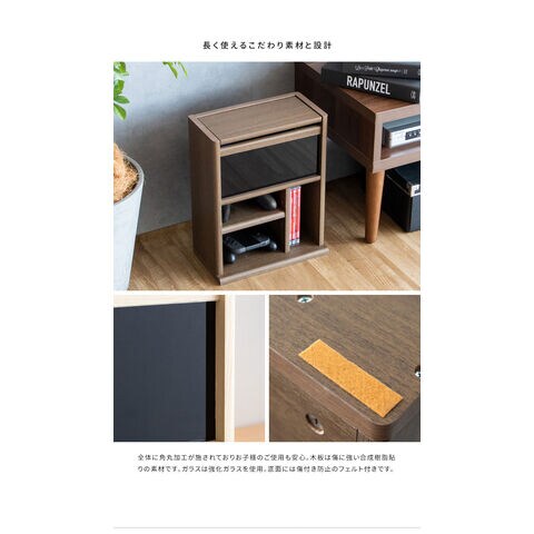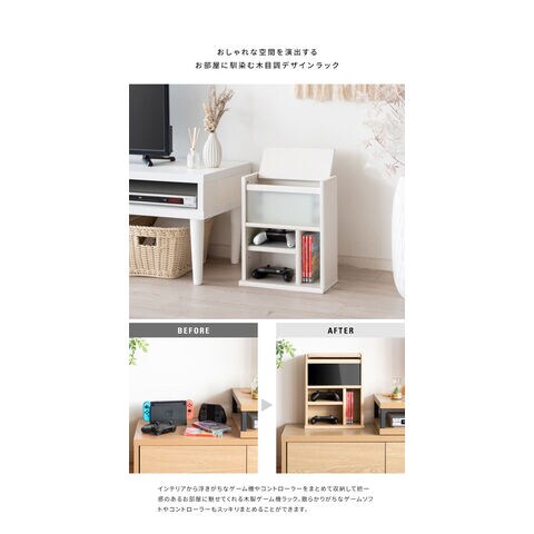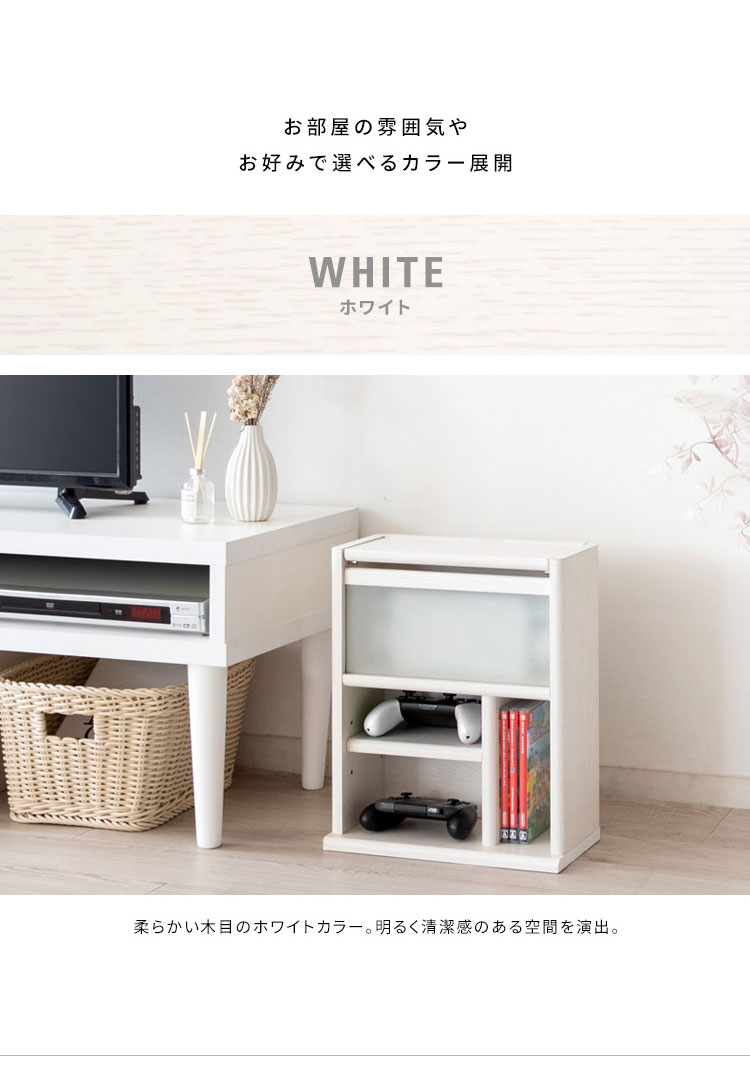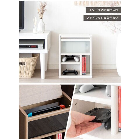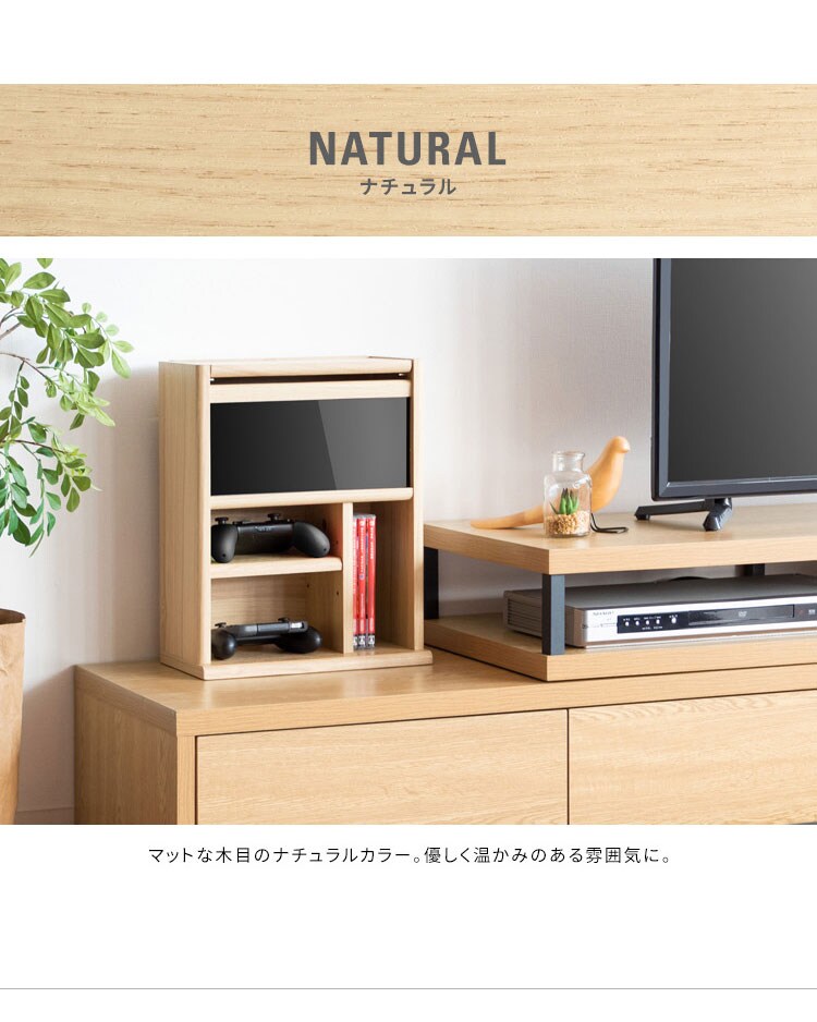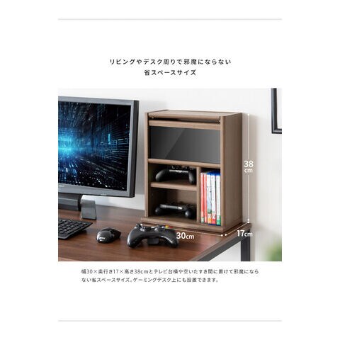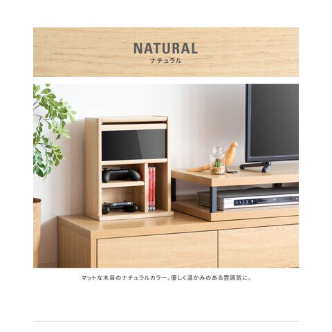 テレビ台横やゲーミングデスク上に置けるコンパクトサイズ。カラーはホワイト、ナチュラル、ブラウンの3カラーからお選びいただけます。