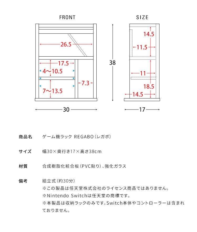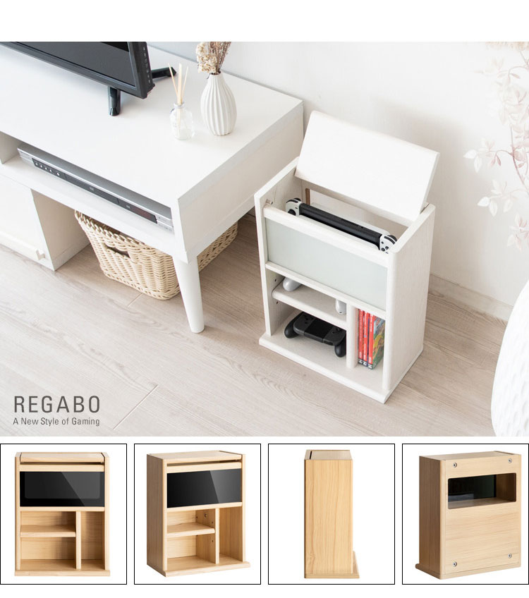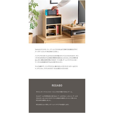 Switchとコントローラー、ゲームソフトをまとめて収納できる便利なデザイナーズゲームラック『REGABO(レガボ)』。