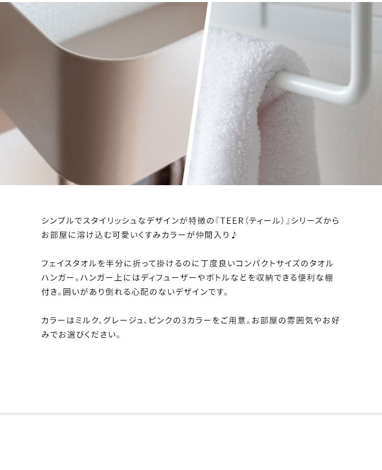 タオルハンガー TEER ティール くすみカラー かわいい おしゃれ タオルハンガー タオル掛け くすみカラー フェイスタオル バスタオル キッチン トイレ サニタリー ハンガー 収納 ボトル収納【送料無料】