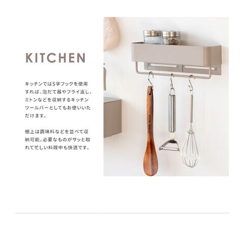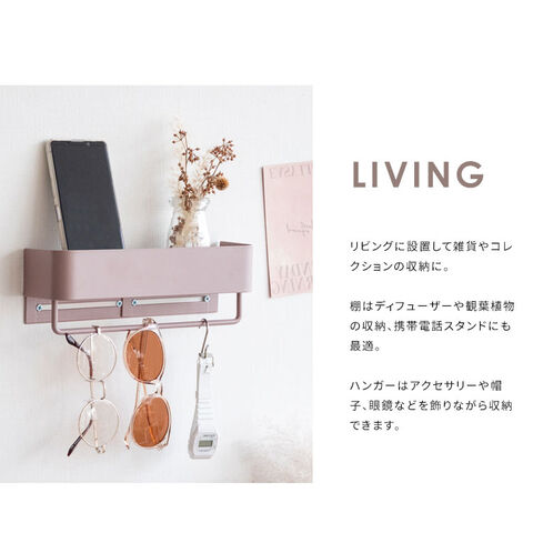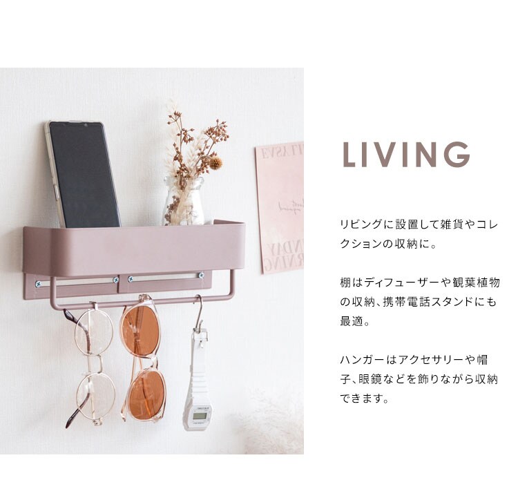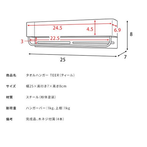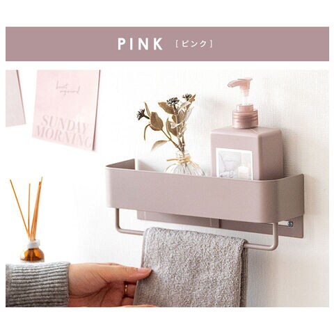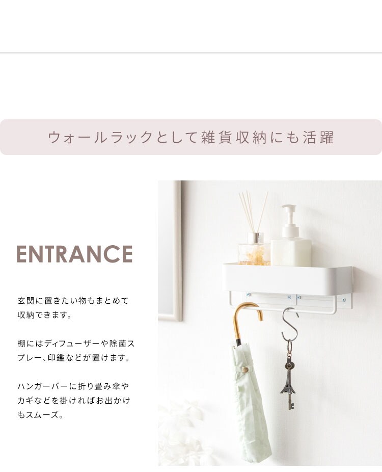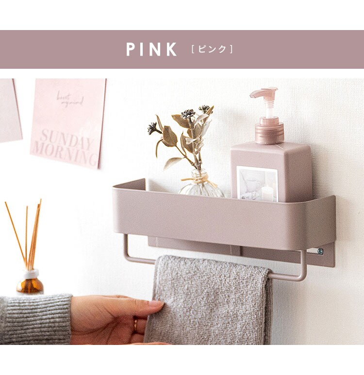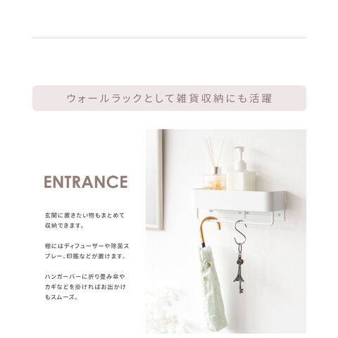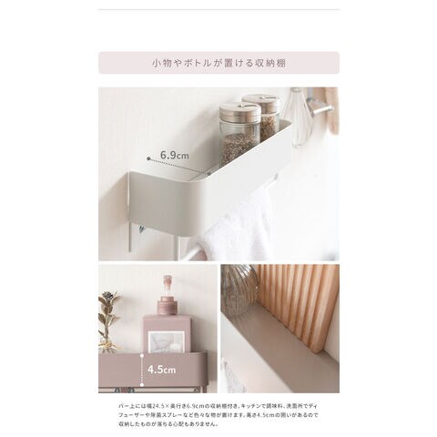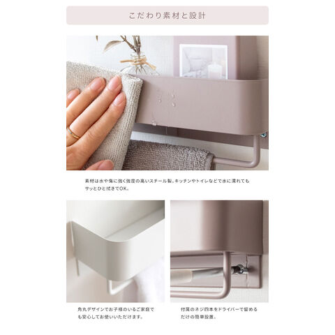 フェイスタオルを半分に折って掛けるのに丁度良いコンパクトサイズのタオルハンガー。ハンガー上にはディフューザーやボトルなどを収納できる便利な棚付き。囲いがあり倒れる心配のないデザインです。
