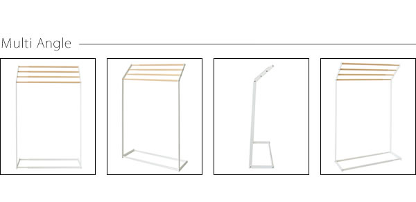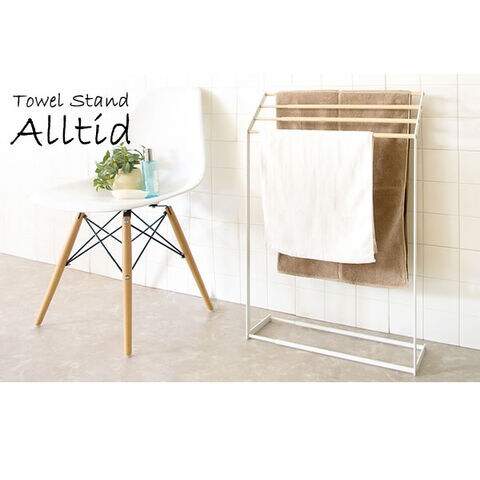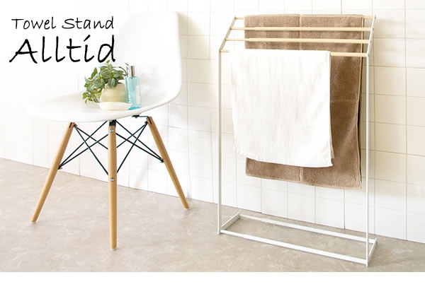 バスタオルやフェイスタオル、バスマットなどがサッと掛けられる、北欧風のシンプルなデザインのタオルスタンド『Alltid(アルティード)』。