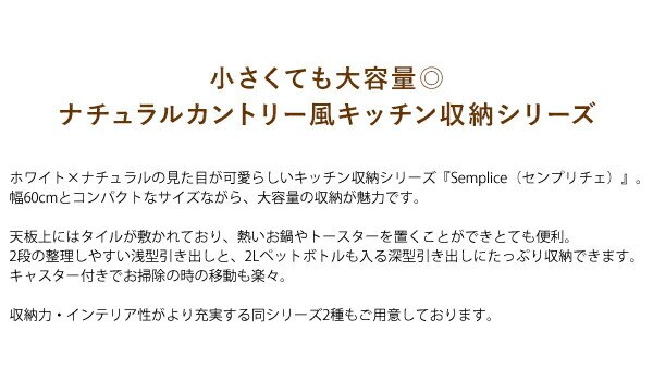 ホワイト×ナチュラルの見た目が可愛らしいキッチン収納シリーズ『Semplice(センプリチェ)』。