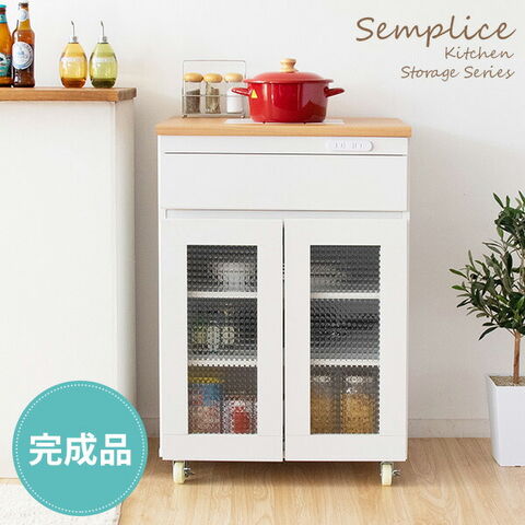 完成品でお届け キッチンキャビネット キャスター付き キッチンラック Semplice センプリチェ 幅60cm 食器棚 レンジ台 レンジワゴン キッチン【送料無料】