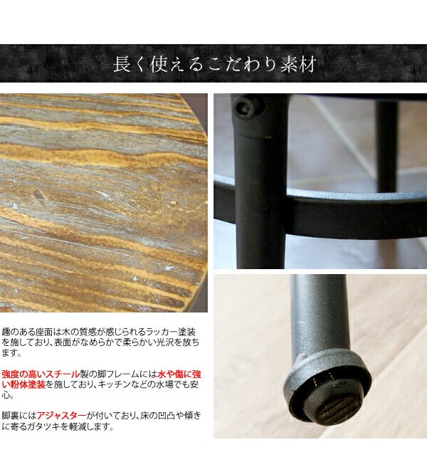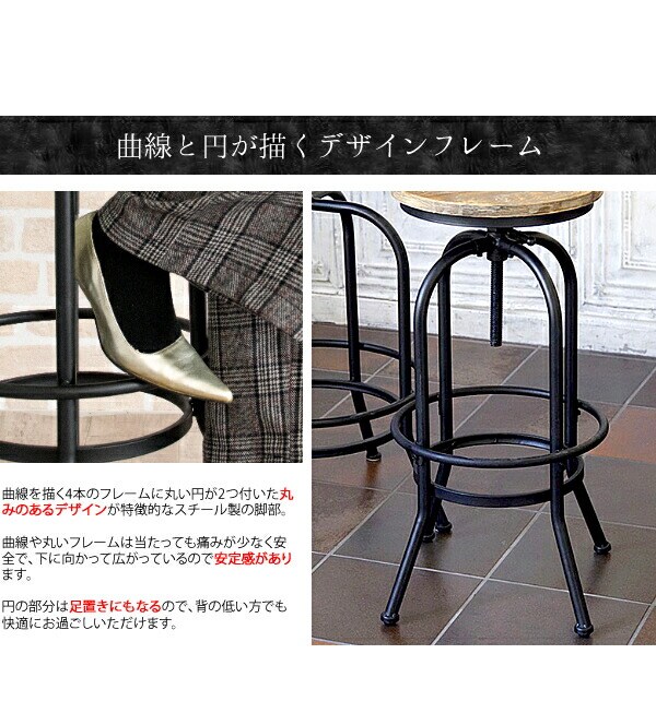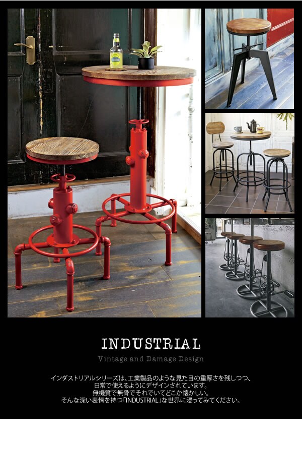 工業製品のような重厚さを活かしつつ、日常で使えるようにデザインされた「INDUSTRIAL(インダストリアル)」シリーズのバーチェア。
