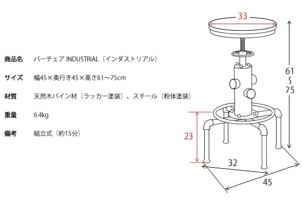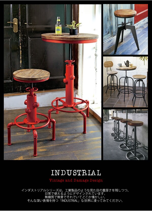 工業製品のような重厚さを活かしつつ、日常で使えるようにデザインされた「INDUSTRIAL(インダストリアル)」シリーズのバーチェア。