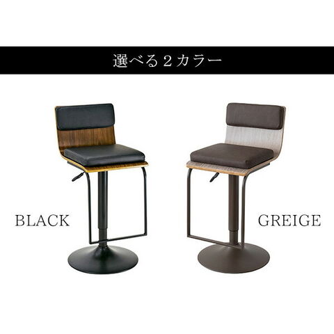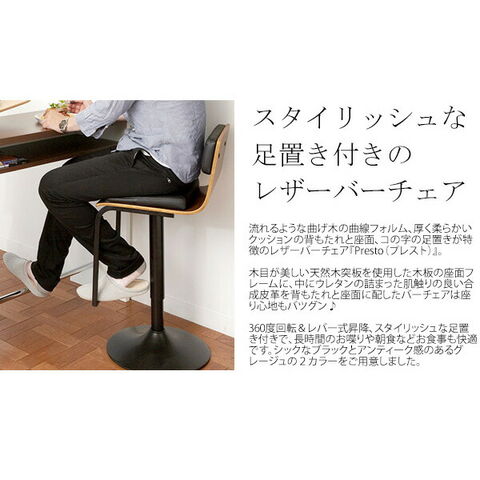 バーチェア 座面高さ調整 360度回転 椅子 イス 曲木のデザインがカウンターをお洒落に演出(KNC-J1088)【送料無料】