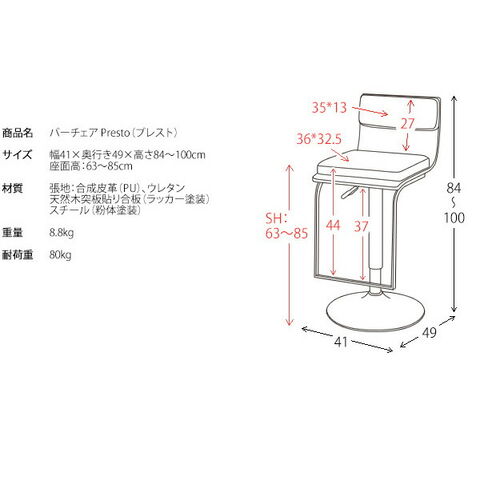 サイズ W41×D49×H84~106cm(SH63~85cm)