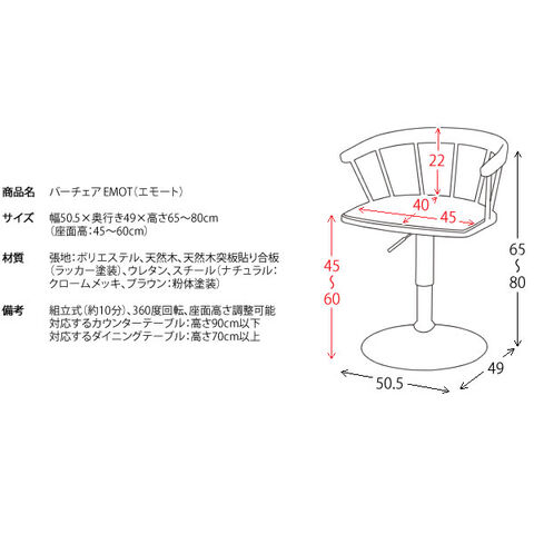 幅50.5×奥行き49×高さ65~80cm(座面高:45~60cm)