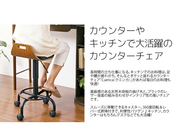 長時間の立ち仕事になる、キッチンでのお料理は、足や腰が疲れがち。そんなときサッと座れるカウンターチェア『Cuenca(クエンカ)』があれば毎日のお料理も快適!