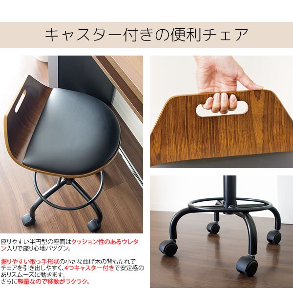 スムーズに移動できるキャスター、360度回転&レバー式昇降付きで、利便性バツグン♪