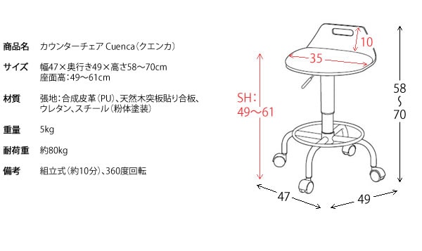 張地:合成皮革(PU)、天然木突板貼り合板、ウレタン、スチール(粉体塗装)