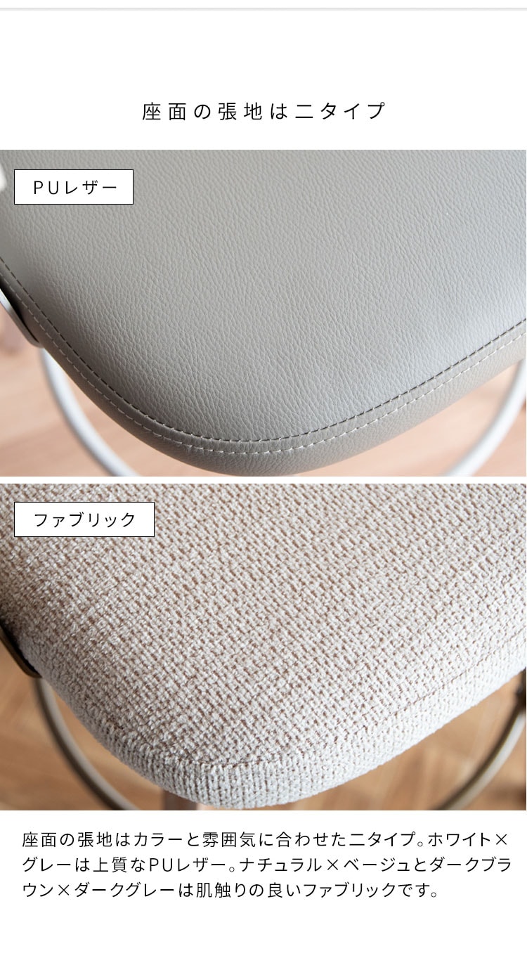 材質 張地:グレー…合成皮革(PU)アイボリー・ダークグレー…ポリエステル&ナイロン、ウレタン、天然目突板合板(ラッカー塗装)、スチール(粉体塗装)