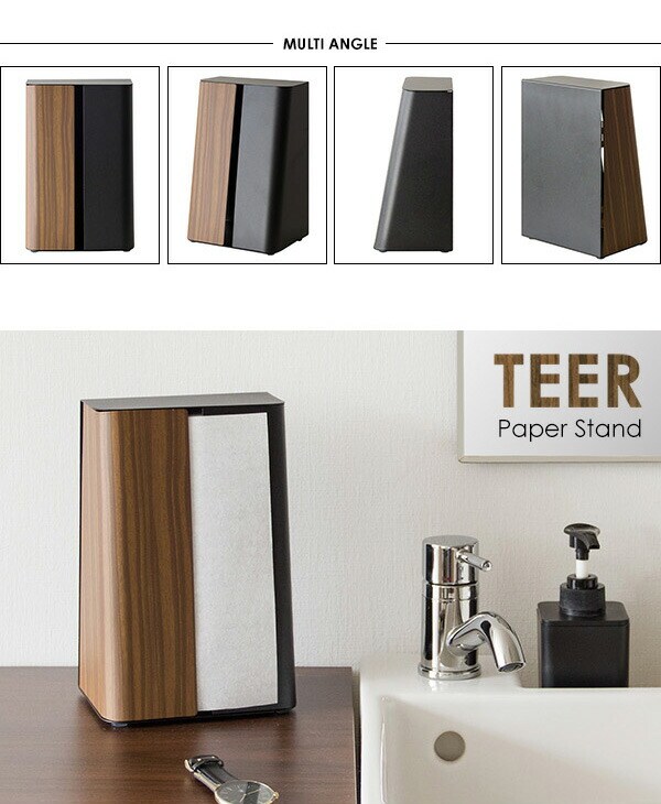 上品な木目転写が特徴のスタイリッシュな『TEER(ティール)』シリーズのペーパースタンド。 縦置きのスタンドタイプなので省スペースで狭い洗面所やキッチンにも置けてサッと取り出せます。