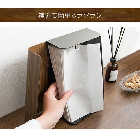 ペーパータオルを収納することで水・油撥ねやホコリからペーパータオルを守り、いつも清潔に保てます。 大きく開くカバーで、大容量のペーパーもラクラク補充。キッチンペーパーやティッシュケースもセット可能です。