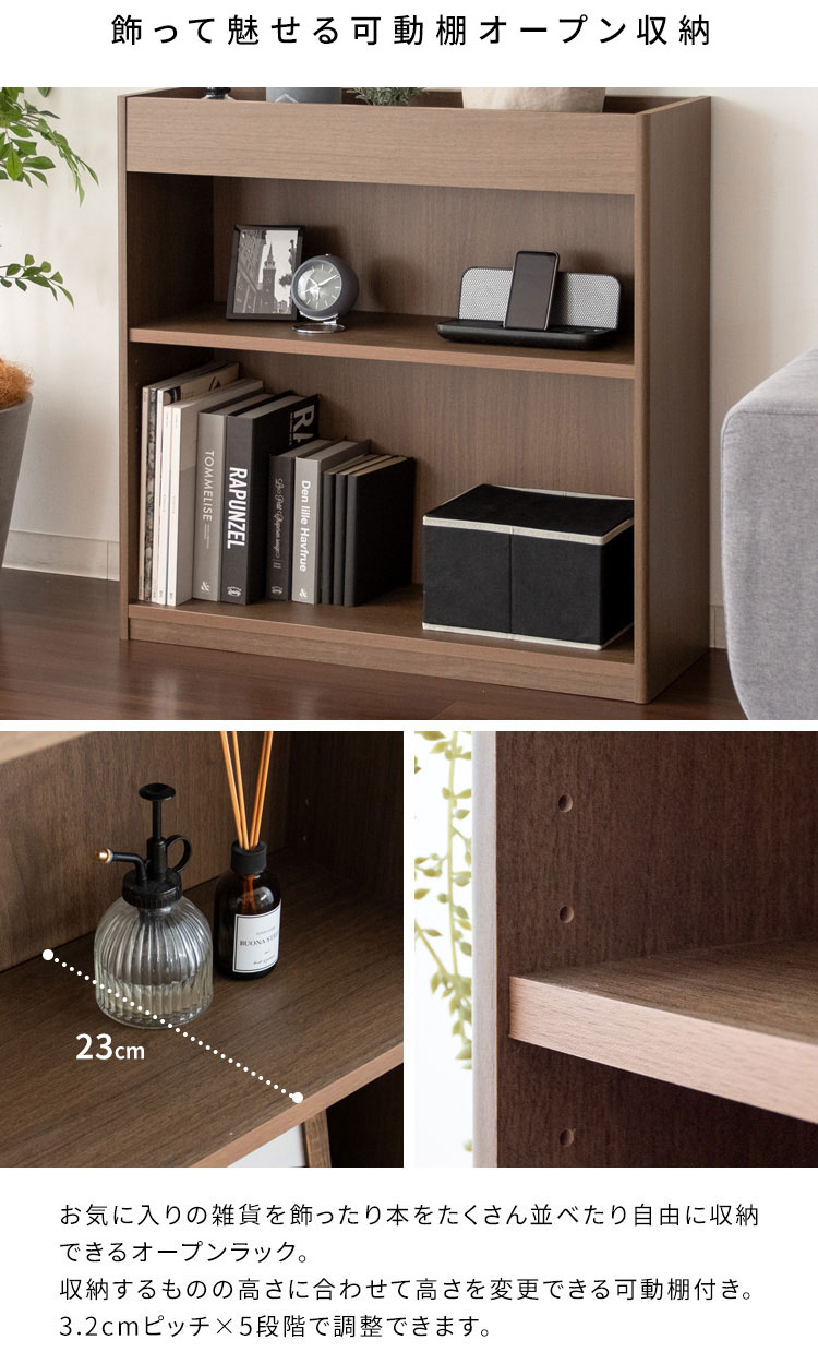 下部はお気に入りの雑貨のディスプレイもできる可動棚付きのオープン収納。