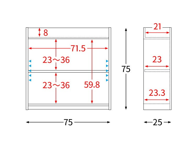 サイズ:幅75×奥行き25×高さ75cm