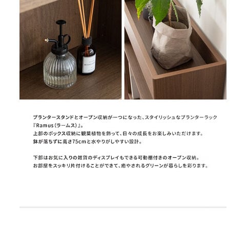 Ramus プランターラック オープンラック ボックス収納 オープン収納 収納棚 雑貨 プランター ディスプレイ スタイリッシュ 観葉植物 可動棚 省スペース スリム設計 リビング おしゃれ 屋内 シンプル【送料無料】